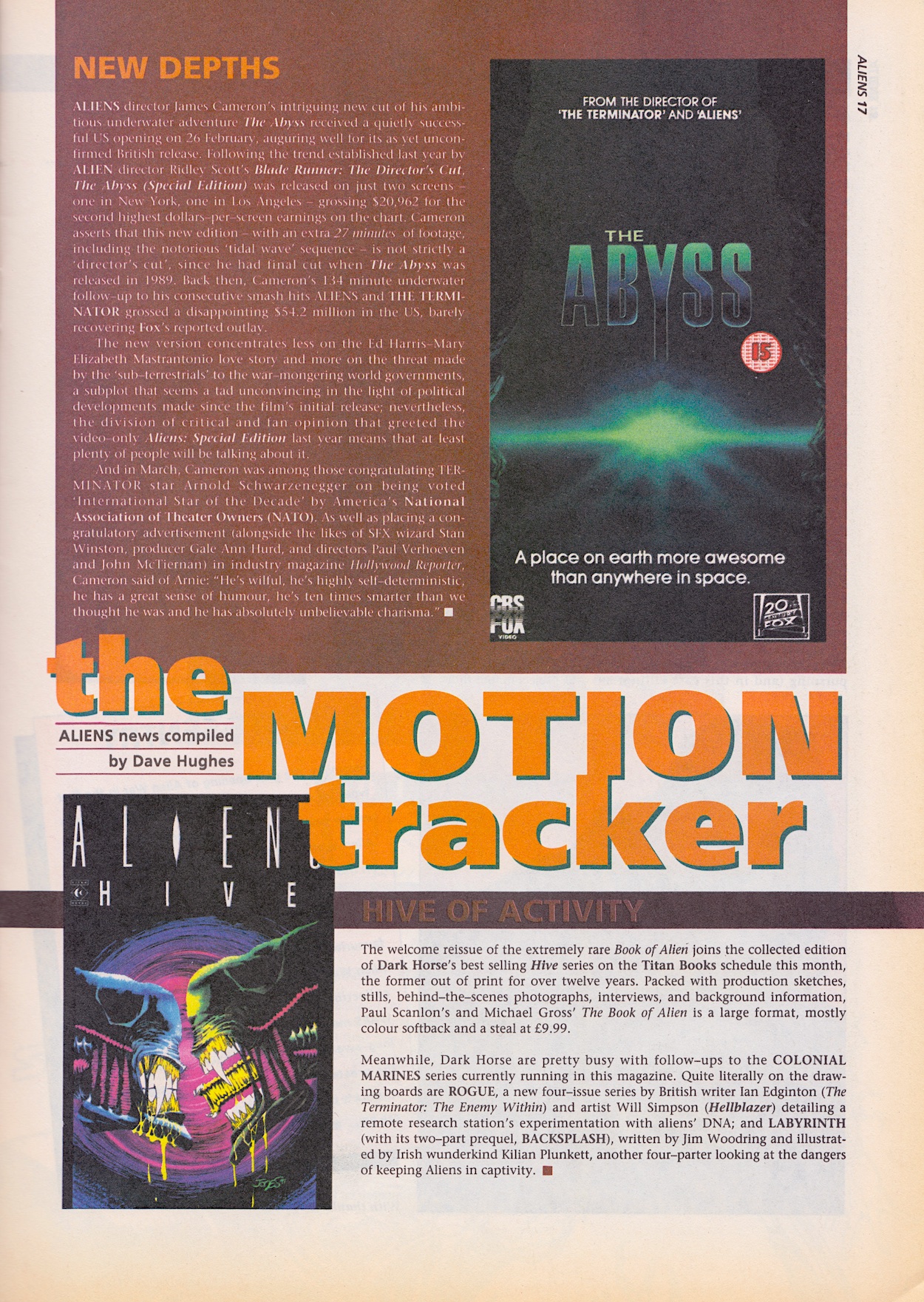 On to the Motion Tracker and on the first page of this month’s news we can see the early days of UK Aliens and sci-fi cons, complete with promises of star guests that they simply couldn’t fulfil, expensive tickets and low turnout. I remember those days here in Belfast after Doctor Who returned over a decade later. There’s also a column about toys which always confused me when it came to ’18’-cert films. Collectibles I can understand, but Aliens, RoboCop and Terminator all had children’s toys produced (this was before the days of the RoboCop TV series or cartoon).