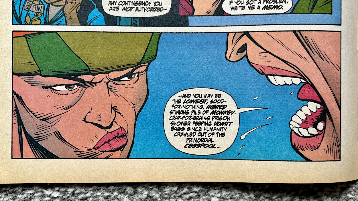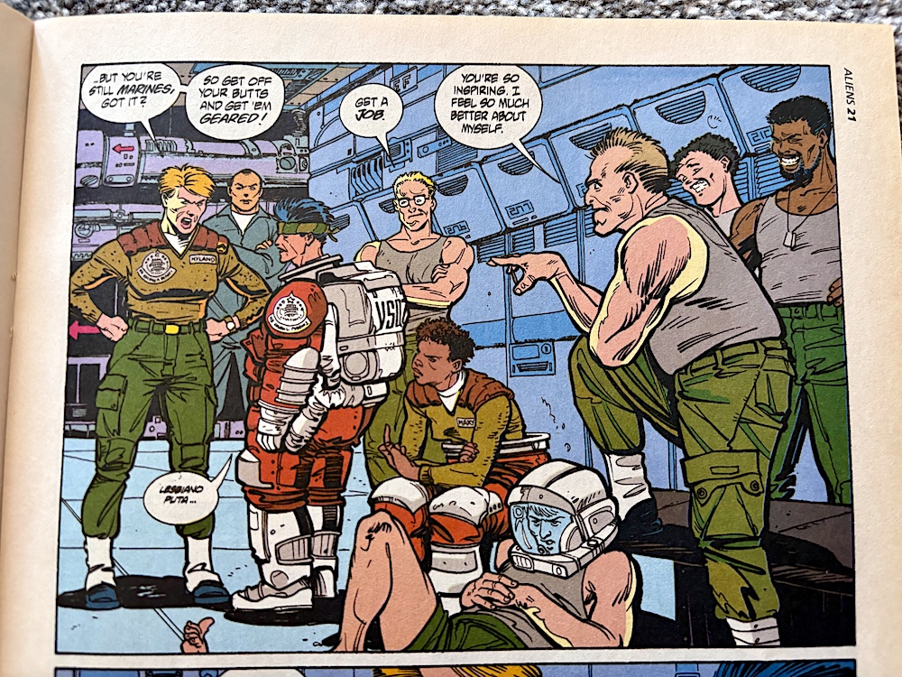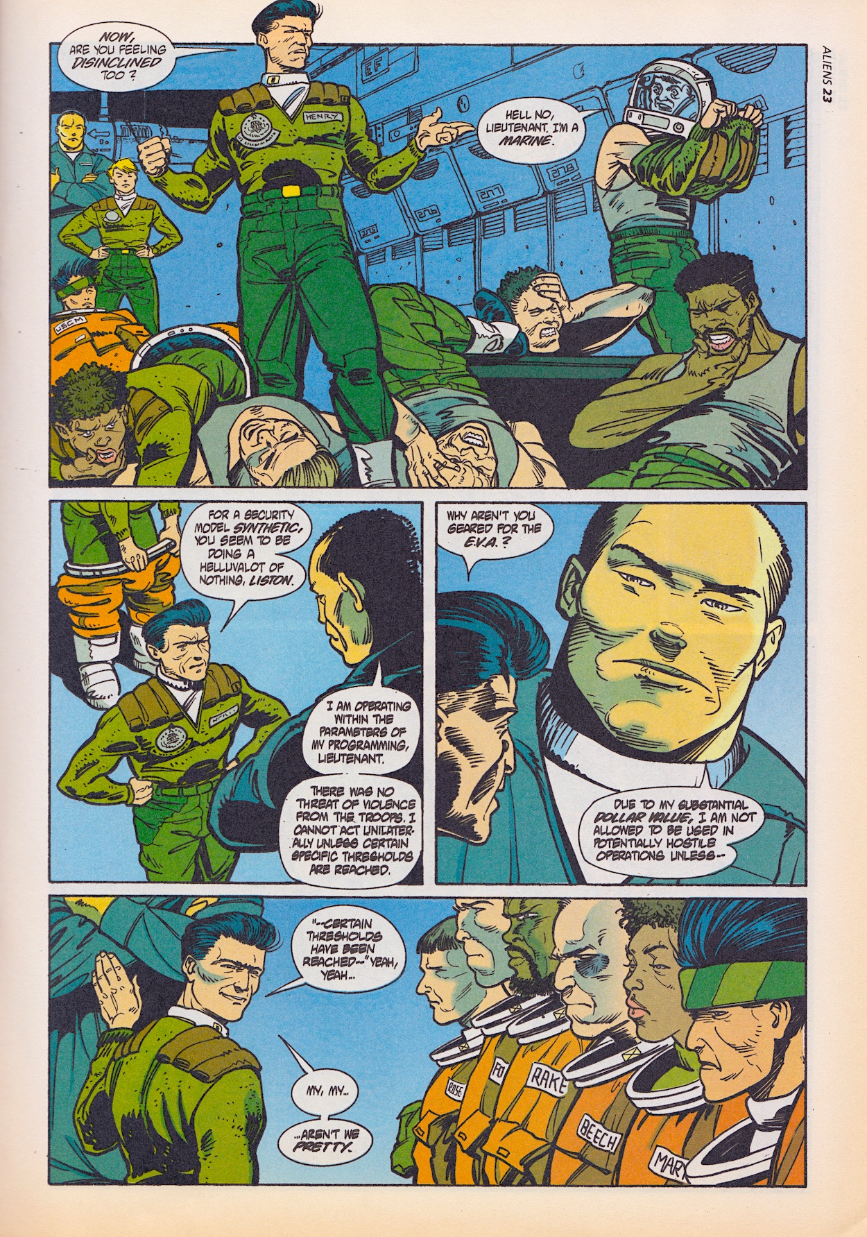 As you can see the chapter ends with Vasquez freezing on the spot after all of her previous bravado, showing she’s a different character than her sister in the film. Although, at one stage someone does ask if she’s looking forward to delivering payback for what the aliens did. But how does she know they killed her sister? Ripley, Hicks and Newt were the only survivors. Two of them died before waking up and the third not long after! And it’s not like the company would’ve let on. An oversight perhaps on the part of writer Chris Warner but nothing that spoils this enjoyable little tale.