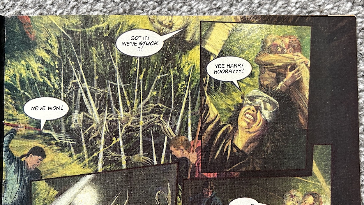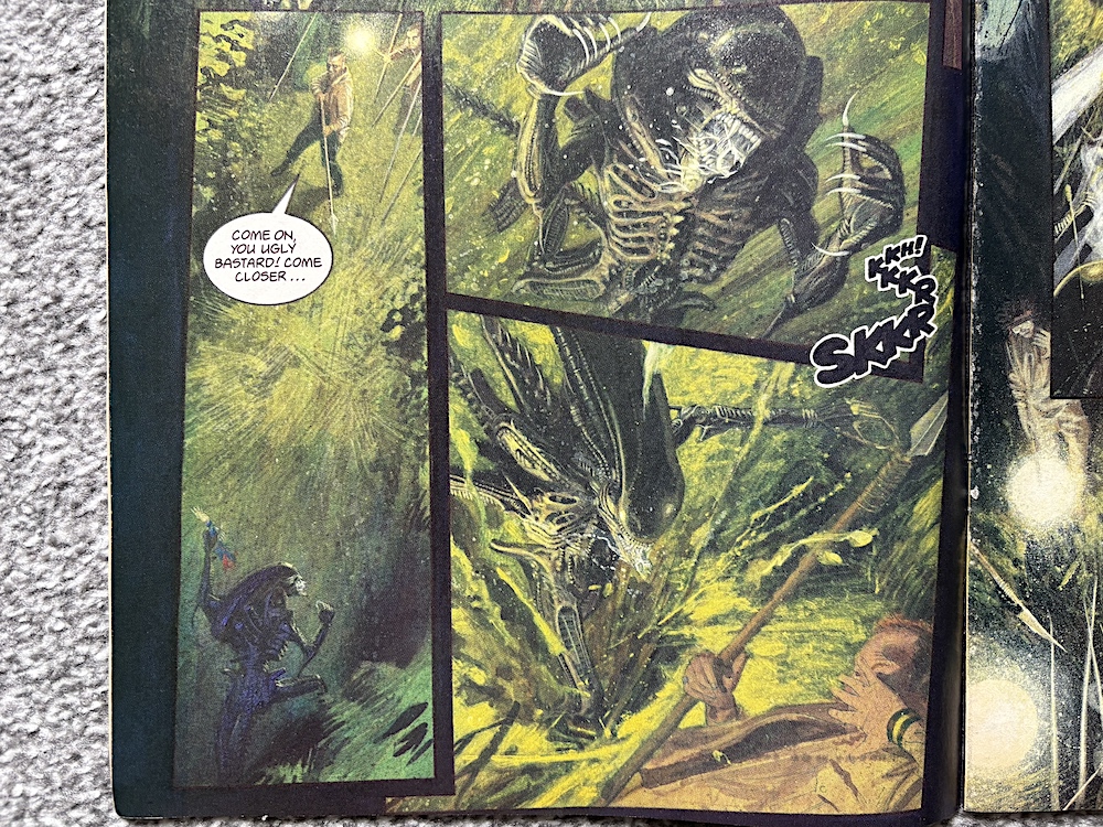 Back in the early 90s Dark Horse US published a monthly Aliens comic depicting the Earth War starring the Hicks and Newt characters from the second movie. Of course, after Alien³ this was no longer canon but the company’s UK branch was about to start publishing sequel stories anyway. I don’t know if volume one of the comic under previous publisher Trident covered the war but no spoilers please, I’ll read them eventually for the blog.