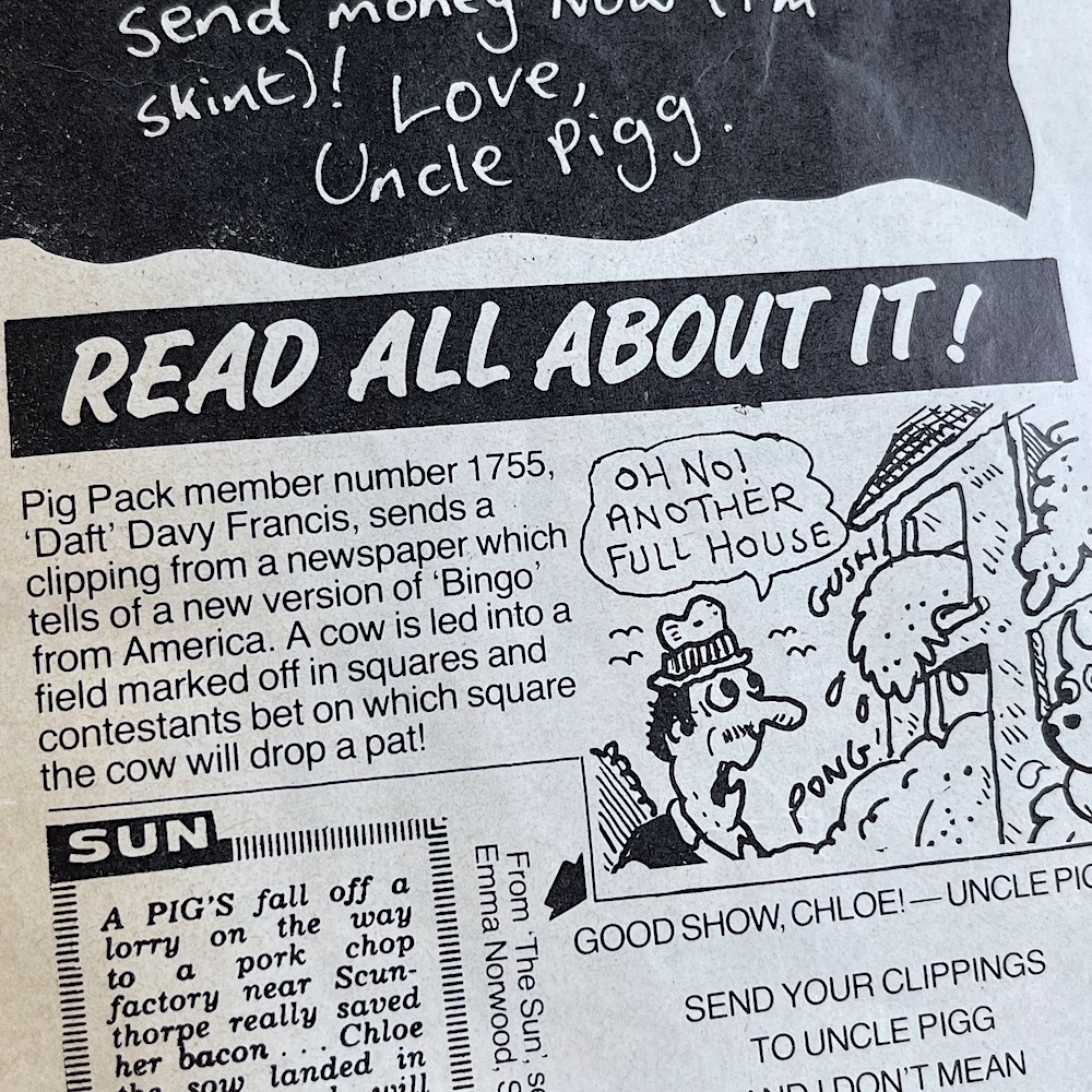 Before we wrap up with the back page, here’s a little bit of news about the next issue. While this edition may have introduced a wealth of new characters, #16 brings with it a true superstar, a megastar, a “fantastic” new addition to OiNK who I remember waking up to every Saturday morning on No.73. His creator sadly died back in 2010 and it was the news of his passing that brought me back into the sty after decades away. Next issue sees the start of his contributions which really have to be seen to be believed.