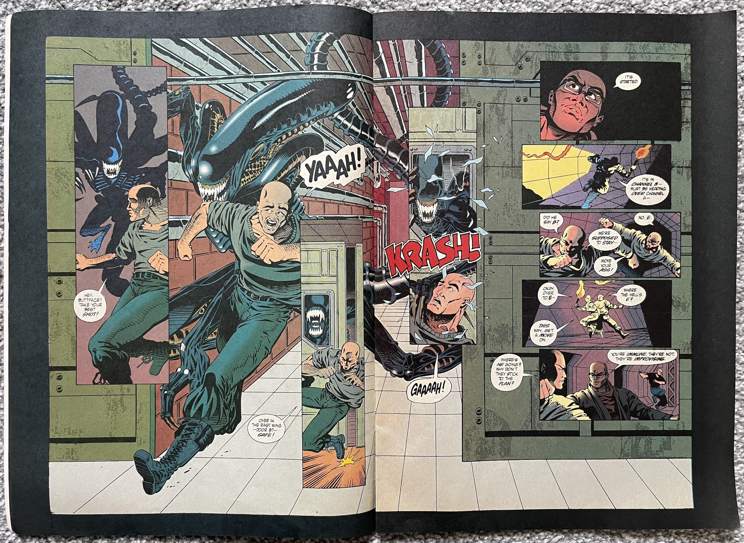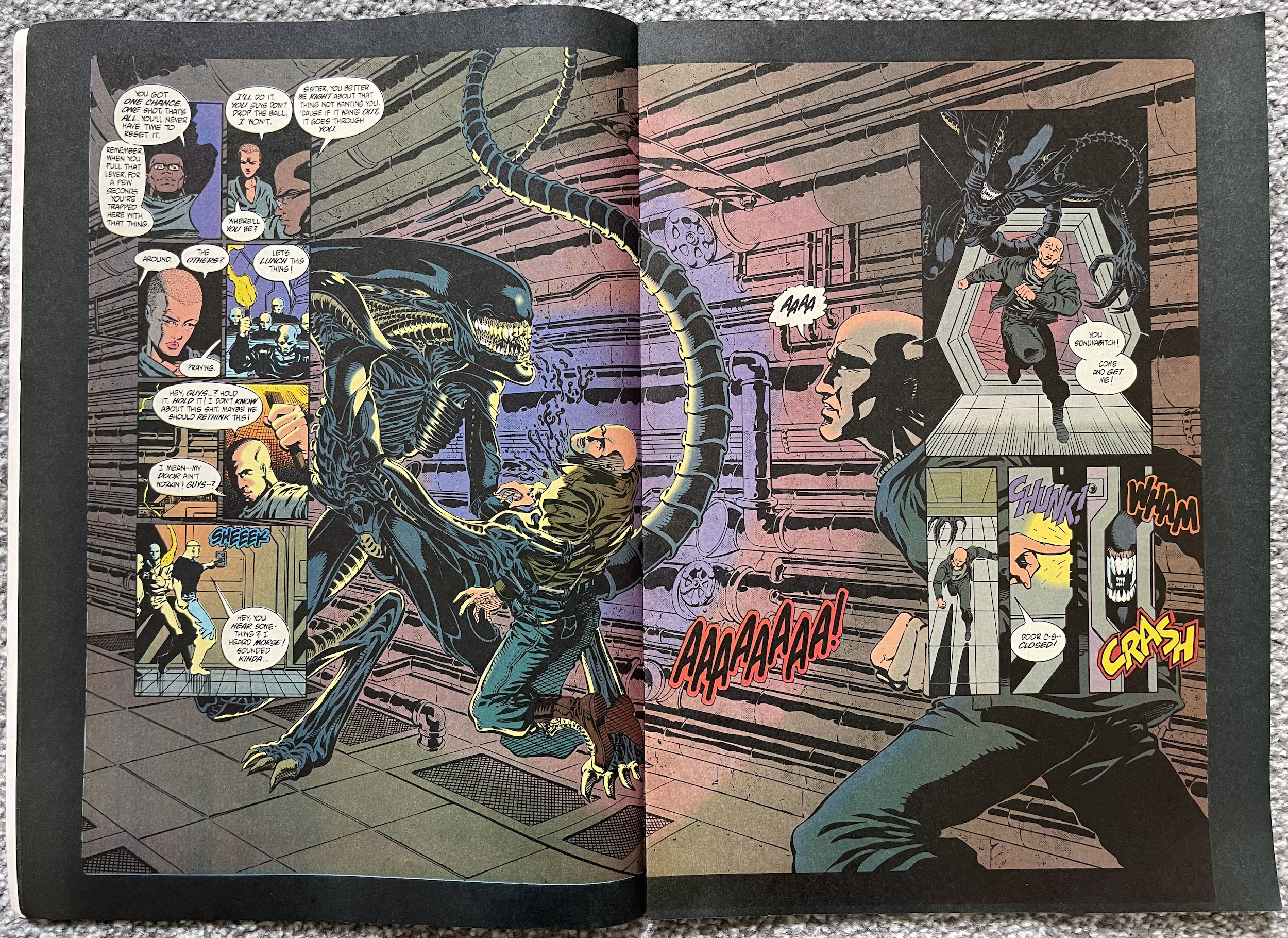 Alien Vs Predator II isn’t the all-action conclusion you’d think from the cover headline. The Alien Queen was already captured and these final two pages are more about the apparently shocking reveal that one of the Predators is actually a human woman working alongside them. But wasn’t this already obvious from chapters right back at the beginning? I thought that was the whole point of the story and the reveal would be why she was doing this.