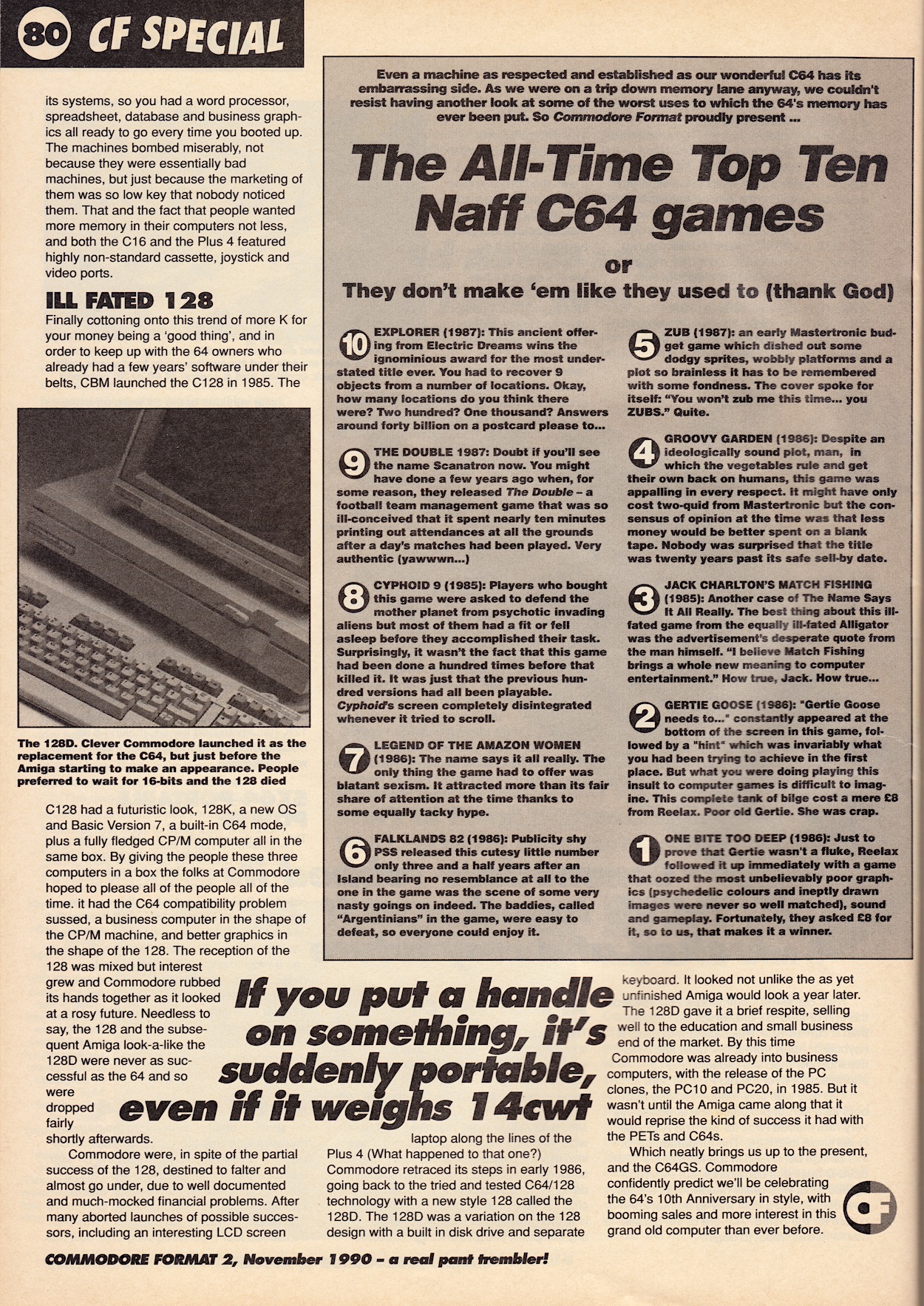 This issue of the simply superb Commodore Format, on sale this day 32 years ago, was my fourth at the time and the first I bought after finally receiving my Commodore 64 computer for Christmas. (You can check out a more personal look at CF in my retrospective on #14.) This was a memorable issue for sure, with certain game reviews leading me to some lifelong favourites which I’d countless hours of fun with, as well as having a super addictive covertape game. However, I’m including it on the blog for none of these reasons.