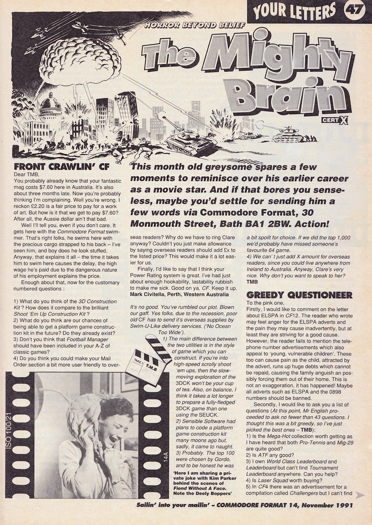 As is customary when looking at these old magazines I can’t help but reminisce and have pulled out some other highlights that had me fondly remembering reading this for the first time. First up is one of the games on the covertape. According to some sources online this was a copyrighted piece of software hacked and distributed illegally through the public domain, CF unknowingly giving away commercial software. But as you can see here in the first paragraph of the instructions page that’s incorrect; a piece of misinformation that gained traction in C64 circles despite the explanation of a hacker’s name on it being front and centre here.