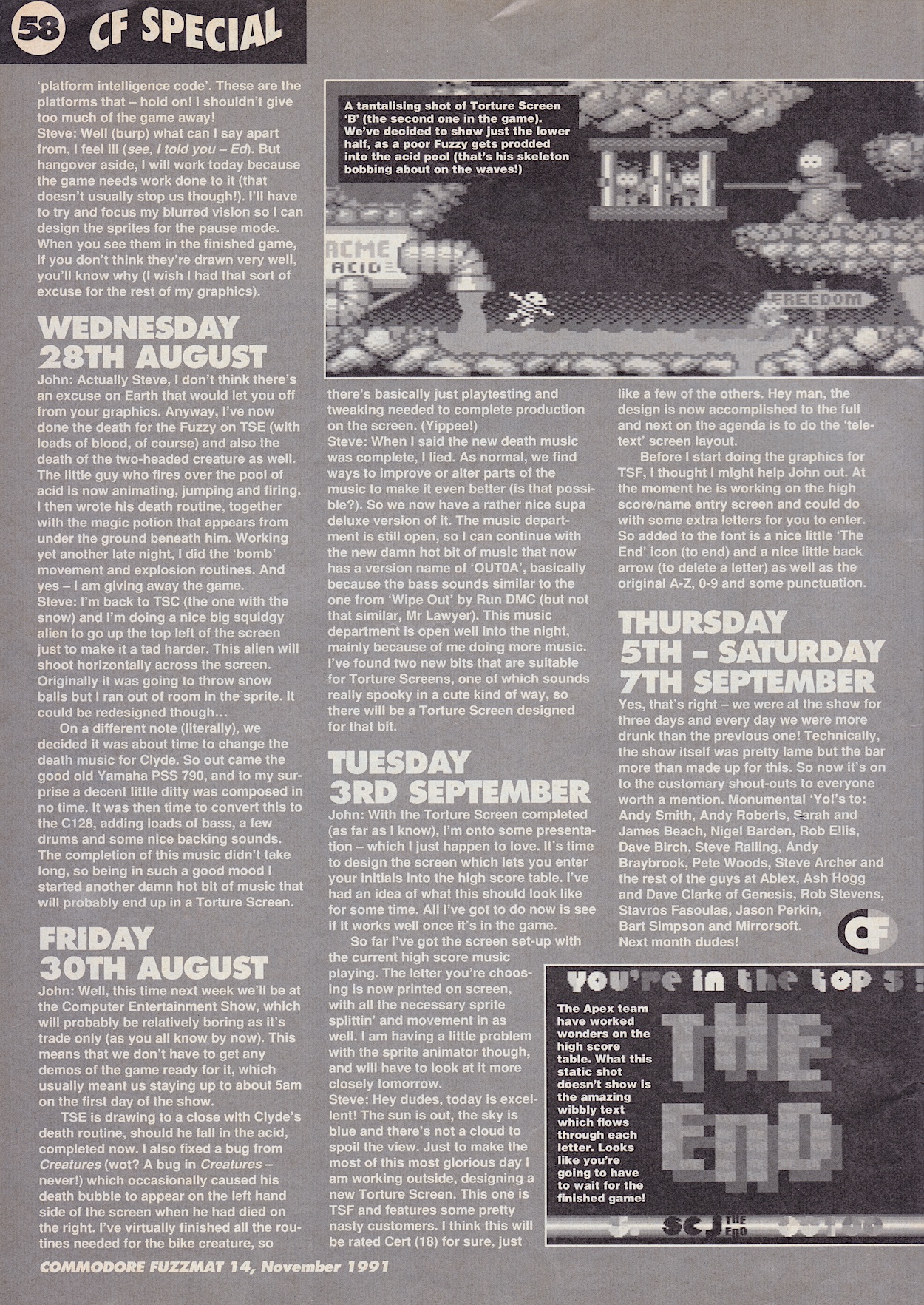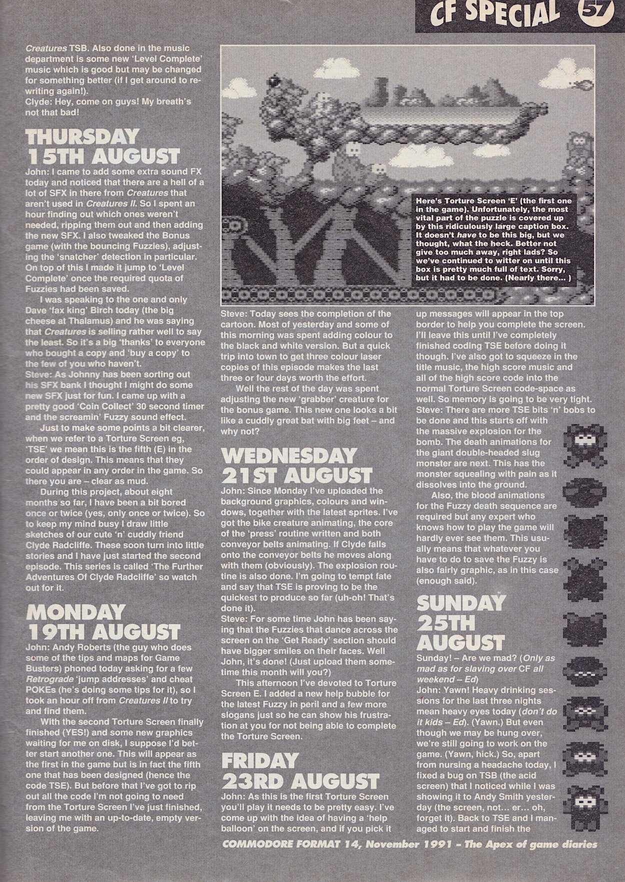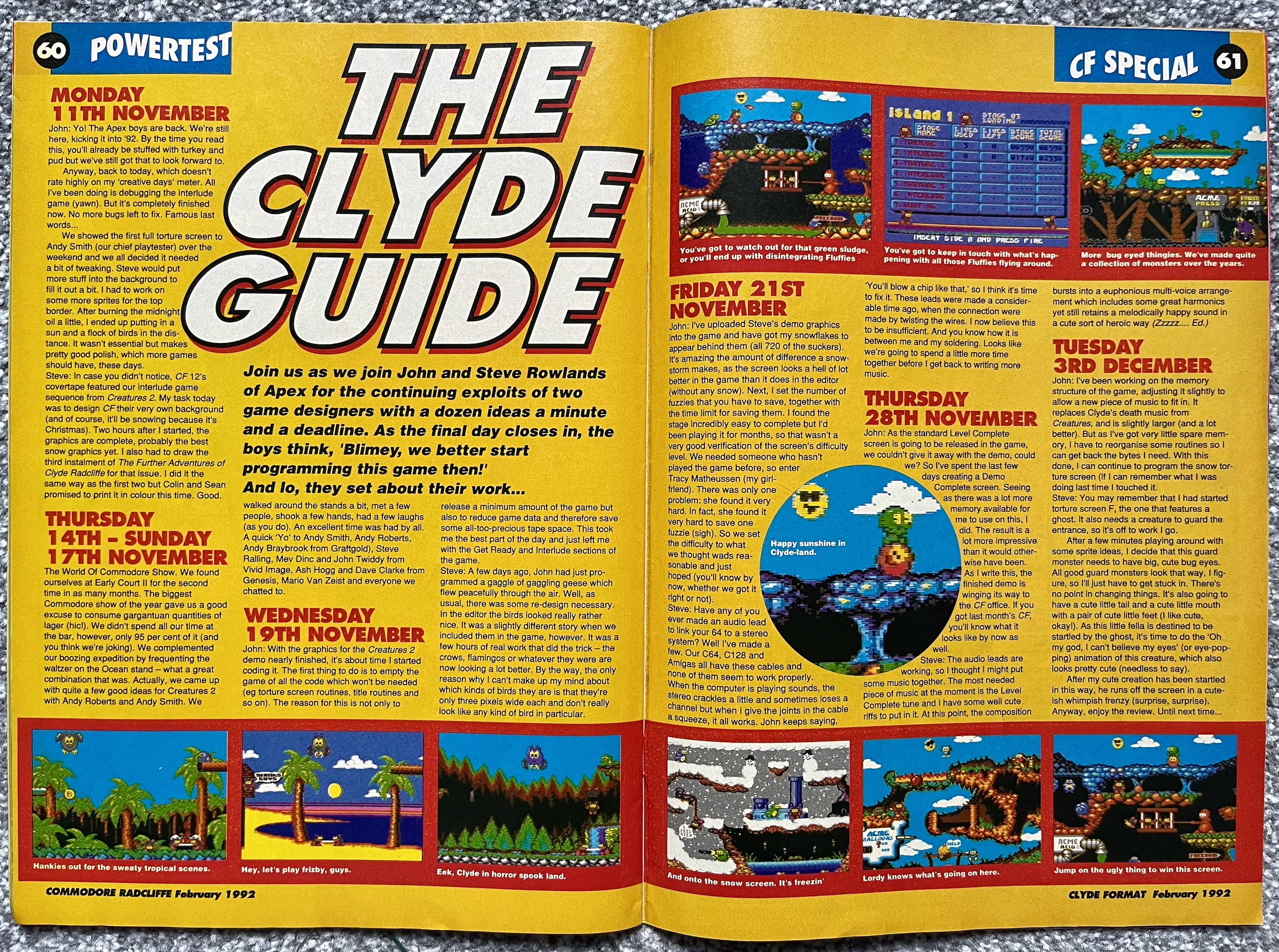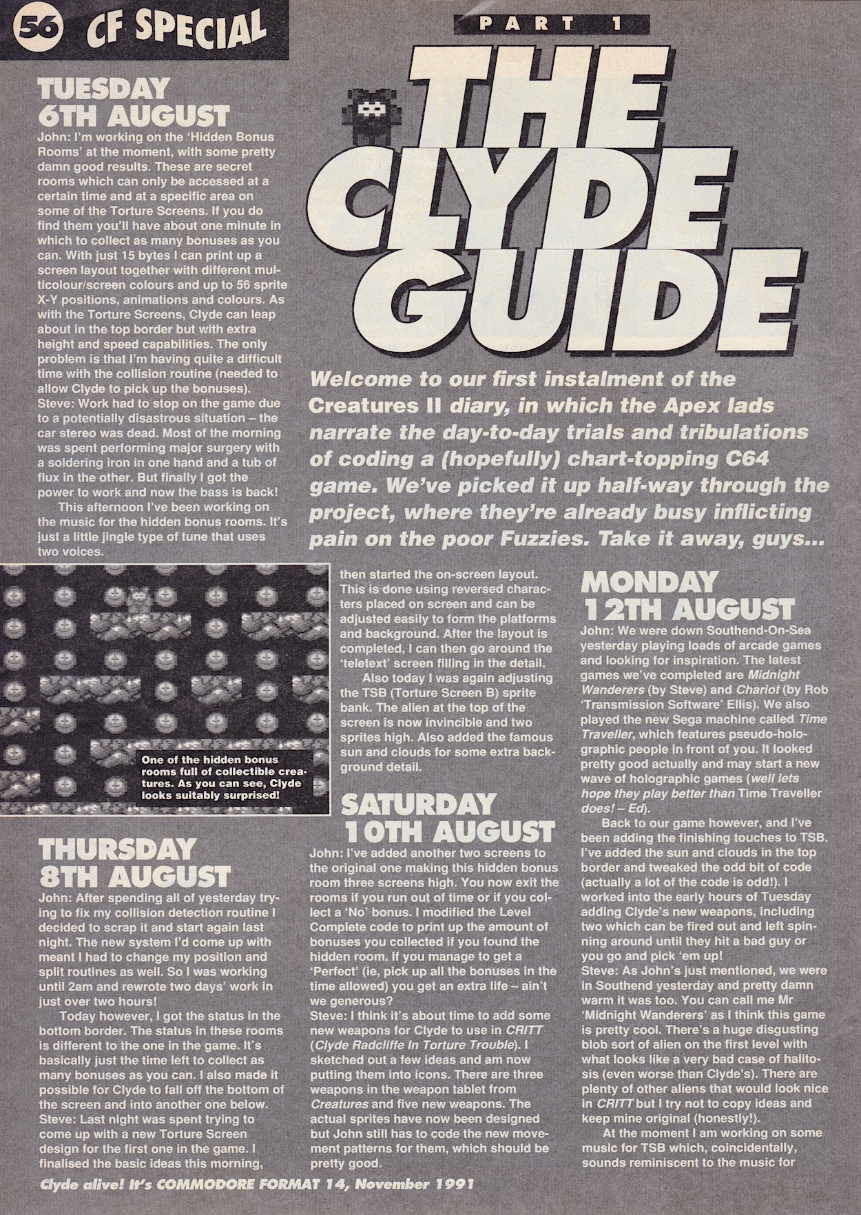 Also this month was the concluding part (obviously, the game was finished) of The Clyde Guide by the geniuses that were John and Steve Rowland, creators of Creatures, who provided a fascinating look into the creation of the game. I loved things like this and when they returned later in the magazine’s life it was for a game called Mayhem in Monsterland which they documented from the very earliest design stages.