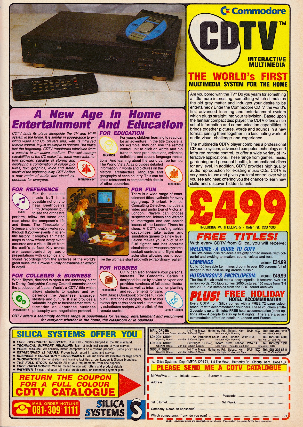 Needless to say it never took off. It was basically a Commodore Amiga with a CD drive and no keyboard; the fact you could buy a keyboard, mouse and even a floppy disk drive for the CDTV didn’t help distinguish it from the computer range either. For me it’s always fascinating to read contemporary magazines from around that time and the hype for The Next Big Thing, and how they were expected to revolutionise our world. It took a little longer but in the end we got there.