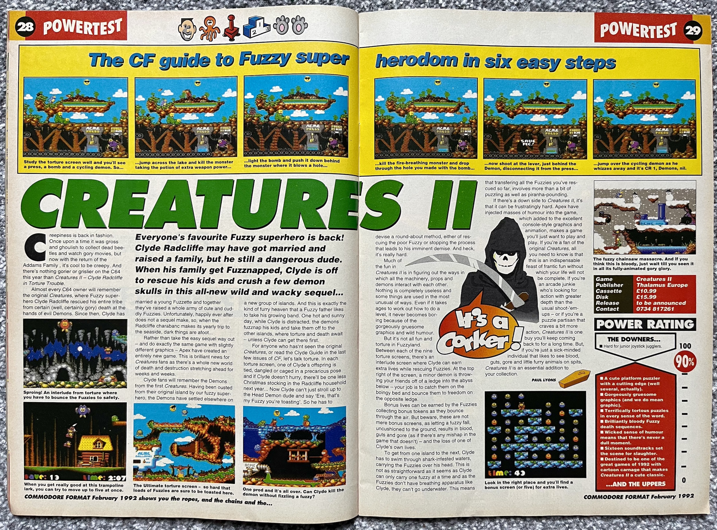 In the Commodore Format retrospective I showed you the preview for First Samurai and the Making Of feature for Creatures II: Torture Trouble (and I also embellished on the magazine’s scoring system), both games impressing me from my first issue. Now at last both were available to buy! They blew away anything I was playing on friends’ consoles at the time and each had me glued to the screen for hours. For a computer created long before Nintendo even released their first console, these were pretty incredible.