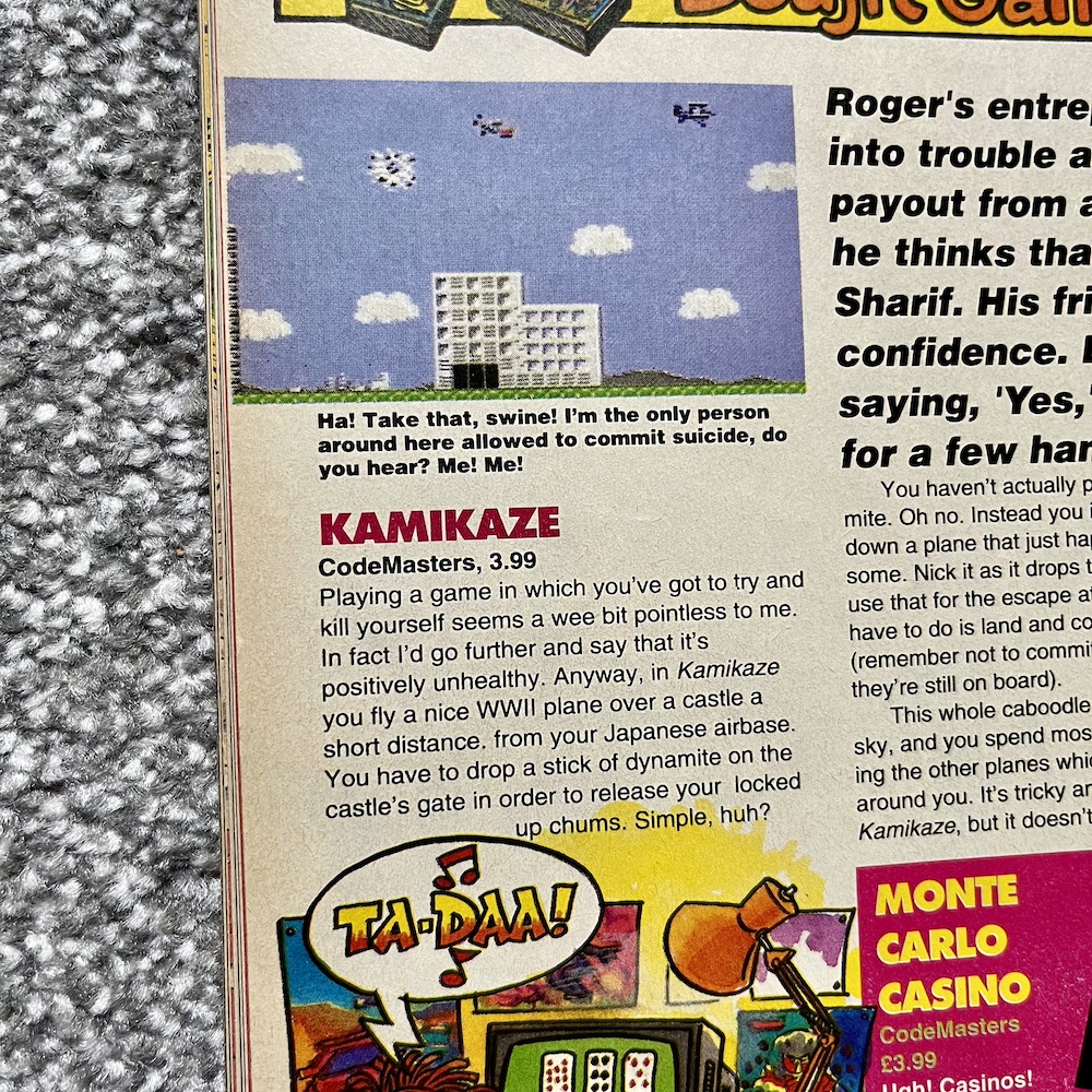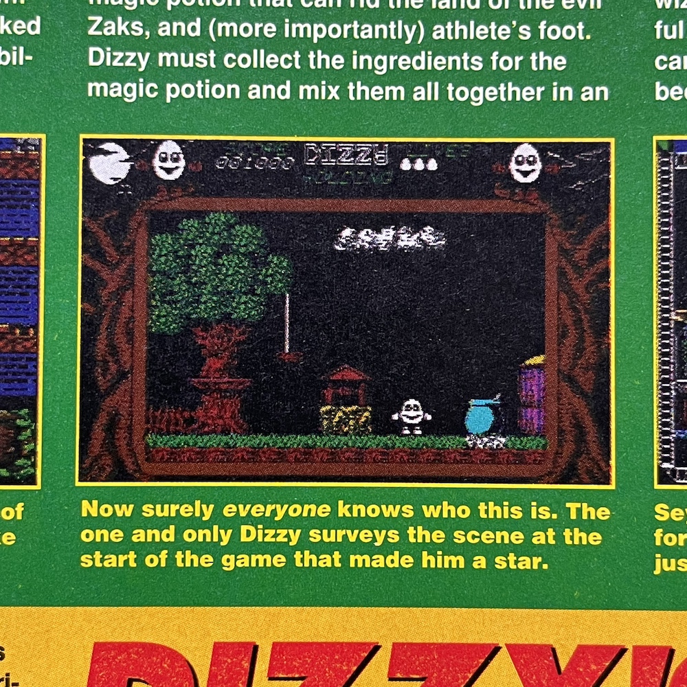 Elsewhere in the budget games section was a game with a title that rather stood out. It was a difficult one I remember. You had to avoid all the buildings and enemy craft (even UFOs) until you got a chance to crash into and destroy the enemy HQ and rescue the hostages! Dizzy also makes an appearance this issue. The little egg character was a megastar in the 8-bit computer days and despite simplistic graphics and controls his adventures proved extremely popular thanks to great gameplay and puzzles.