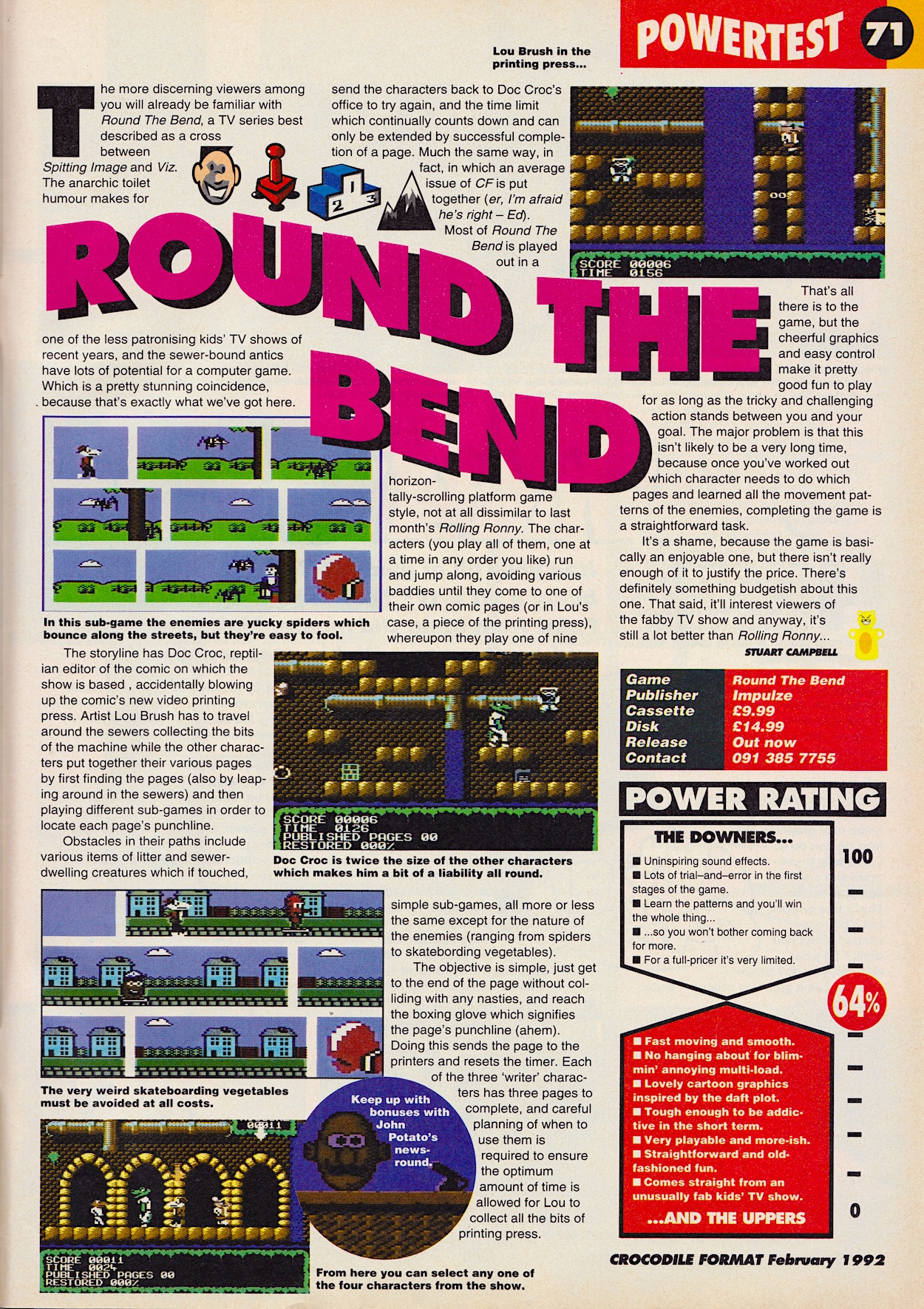 Taking the tired old formula of turning a licence into a platform game, the general consensus appears to be that it plays well but was far too easy. So it was fun but not for long enough to justify the full price. As was customary at the time this would be rereleased a year or so later as a budget game for a few quid, but at a tenner or more it got knocked down for its value for money. It seems to concentrate completely on Doc Croc and his ratty writers too, which seems a waste as the show was chock full of zany characters who could’ve brought many different forms of gameplay. At least John Potato Peel makes a cameo!
