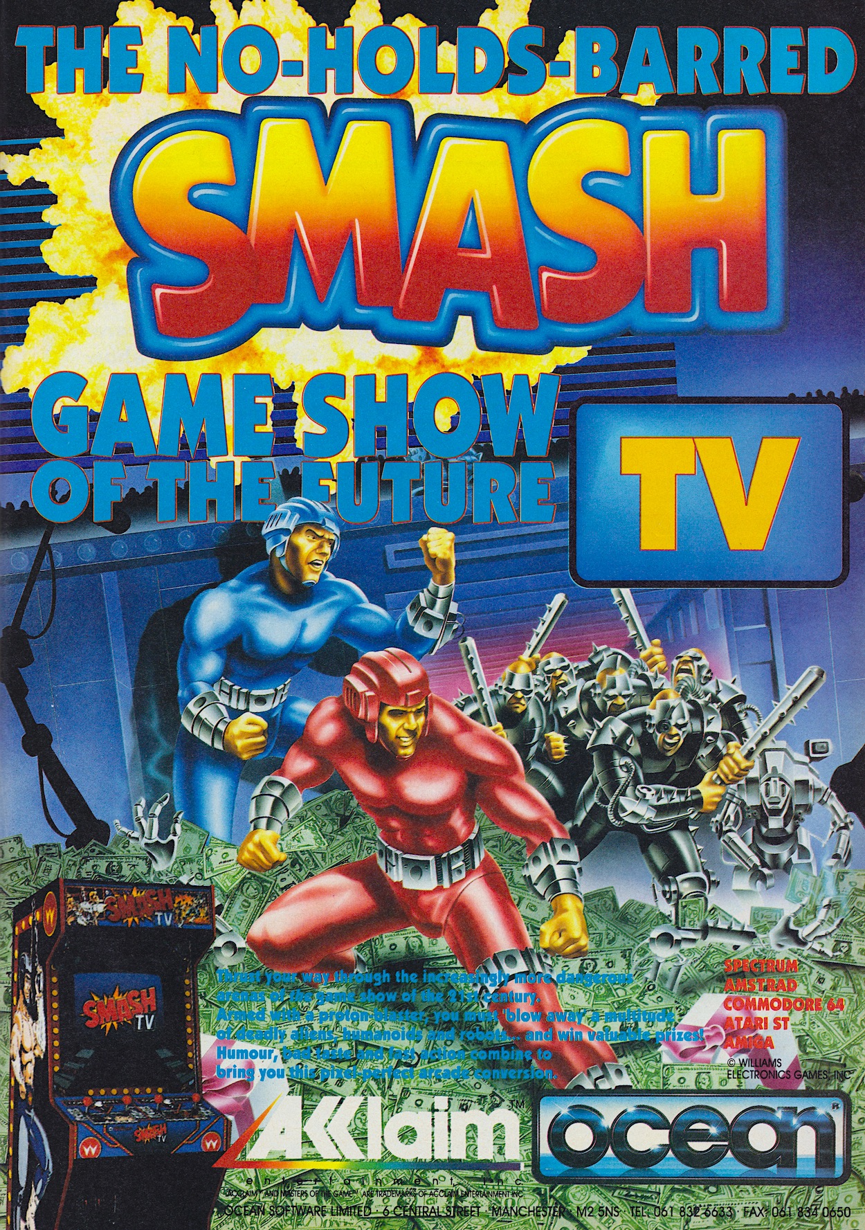 Smash TV was a corker of a game. Copying the controls of the arcade cabinet you could use two joysticks to control your character, one for their feet (their movement) and one for their gun (which direction they’re firing). Hand one joystick to a friend and the shouting and hollering as you try to work together, clearing rooms of enemies in this violent gameshow while trying to pick up brand new toasters etc. was hilarious. Even seeing this advert brings back all the feels.