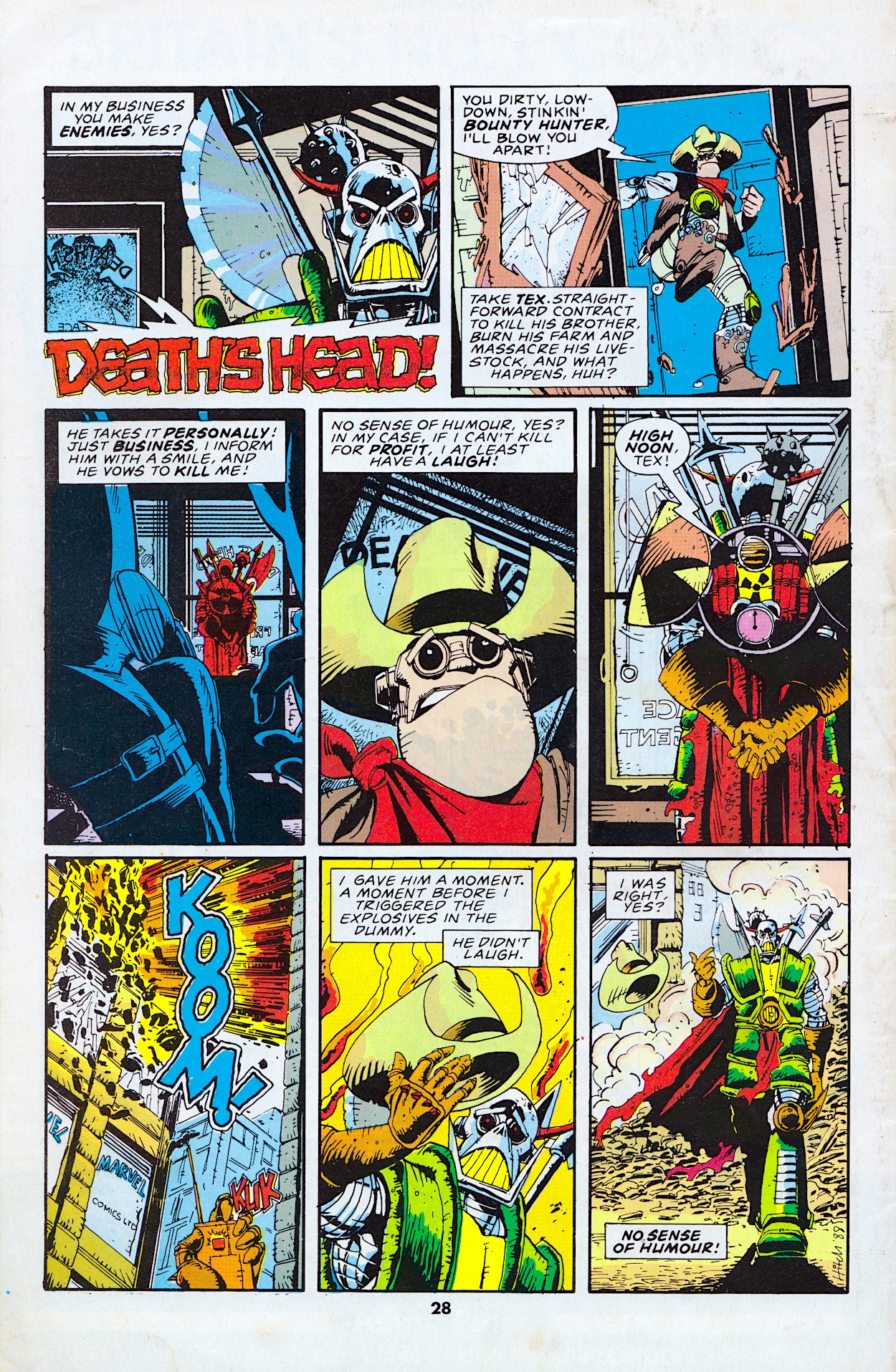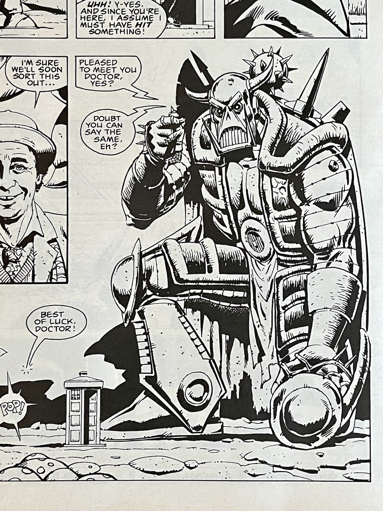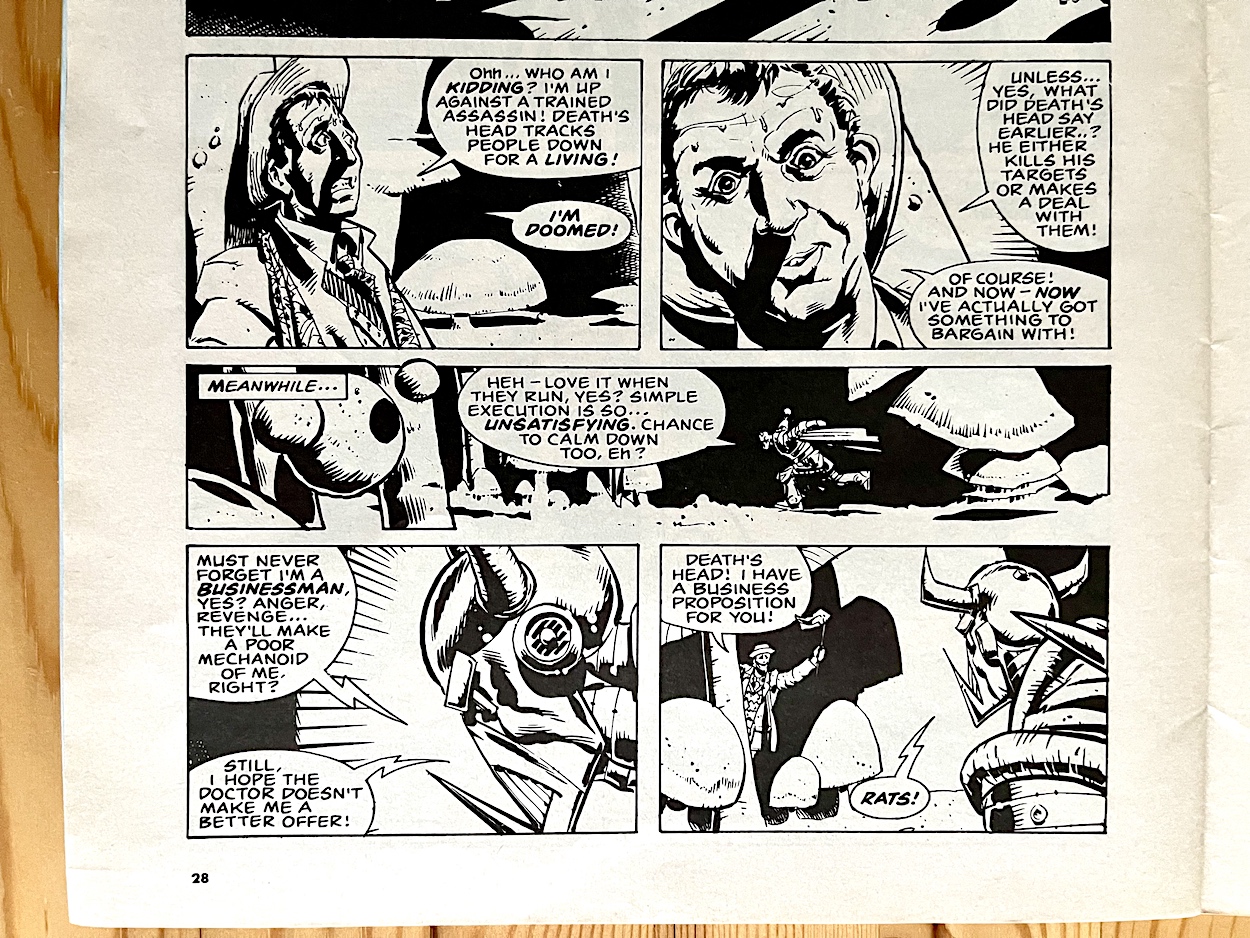 I love that moment. It perfectly demonstrates the character of Death’s Head, his disappointment that he can no longer kill the Doctor because business always comes first. I’m sure I can look forward to a lot more of this humour in his own comic.