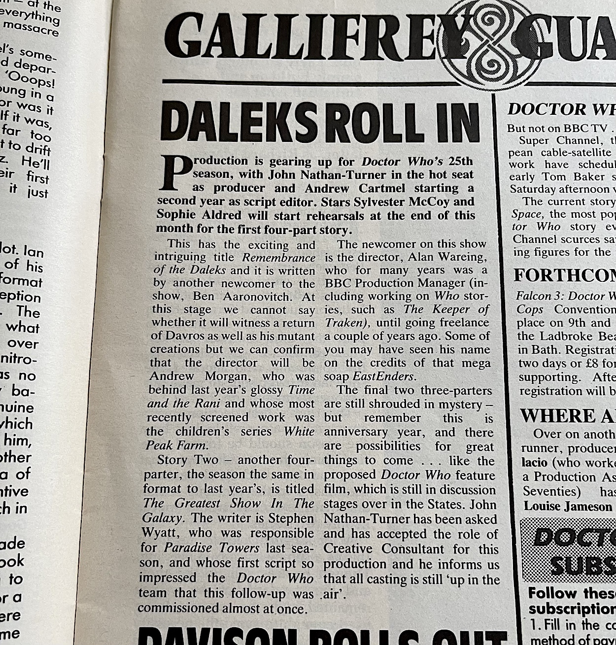 The story Remembrance of the Daleks was my first encounter with the series. It was a brilliant introduction! Made to mark the 25th anniversary of the Daleks I’d never seen anything like it and I was a fan straight away. This issue breaks the news of the new season’s opening story and it really took me back to that evening sitting in front of the portable TV in my bedroom when I decided on a whim to tune in. There are other points of interest in the magazine too.