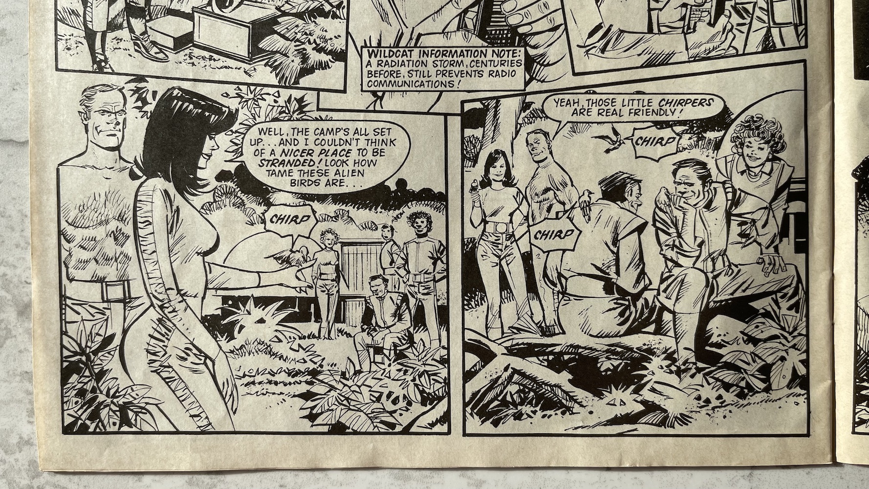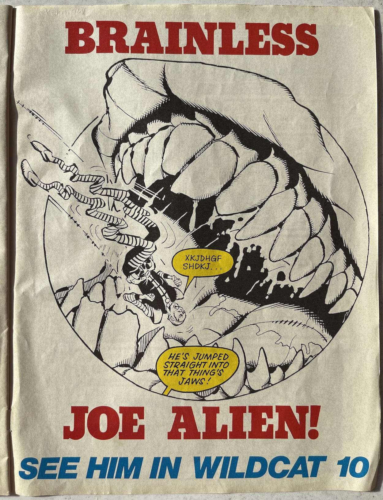 Earlier in the year Eagle announced there would be a Wildcat Holiday Special and an annual. While the latter never materialised I think it’s clear the content for it ended up in the Winter Special instead. (Just like the OiNK Winter Special in that regard.) Things kick off inside with a reprint of the preview issue’s cover and strip, a black and white reprint of a former gorgeously coloured Joe Alien pin up by Ron Smith (which results in his eyes looking hauntingly dead) and then two whole pages are taken up with a ‘Spot the Difference’, which boils down to a page from Eagle (I presume, I’ve never seen it before) reprinted twice.