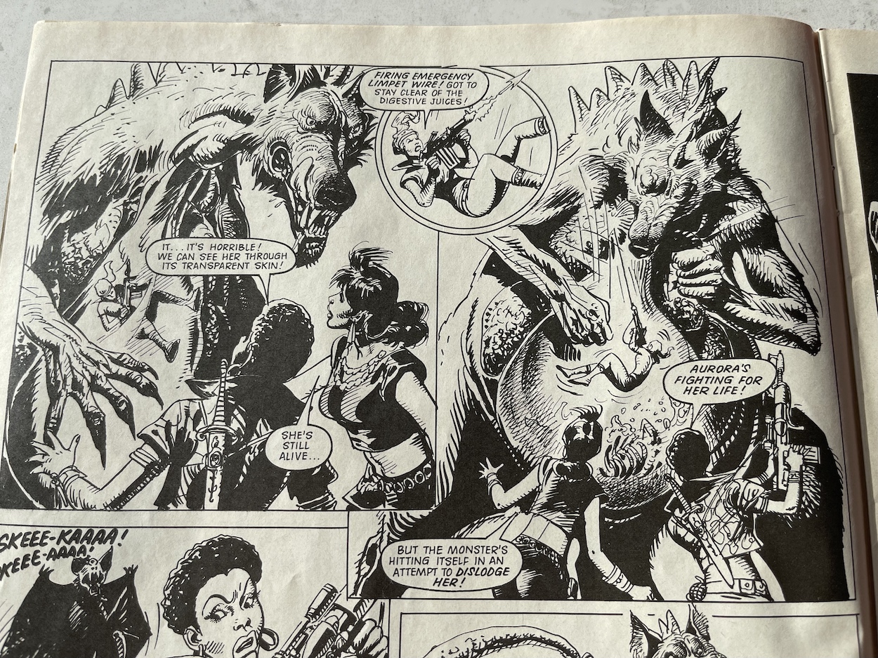 I never expected a one-off strip in the special to advance any of the ongoing arcs but the Kitten Magee story certainly doesn’t disappoint with its always enjoyable characters and the next in its long line of original beasties to fight. In this case that skeleton was indeed the Ikarzeytak, which can regenerate from nothing but rainwater much to the surprise, and then horror, of the team. It’s ludicrous. But it’s ludicrous fun! That’s what Wildcat was all about and so the Winter Special ends on a high.