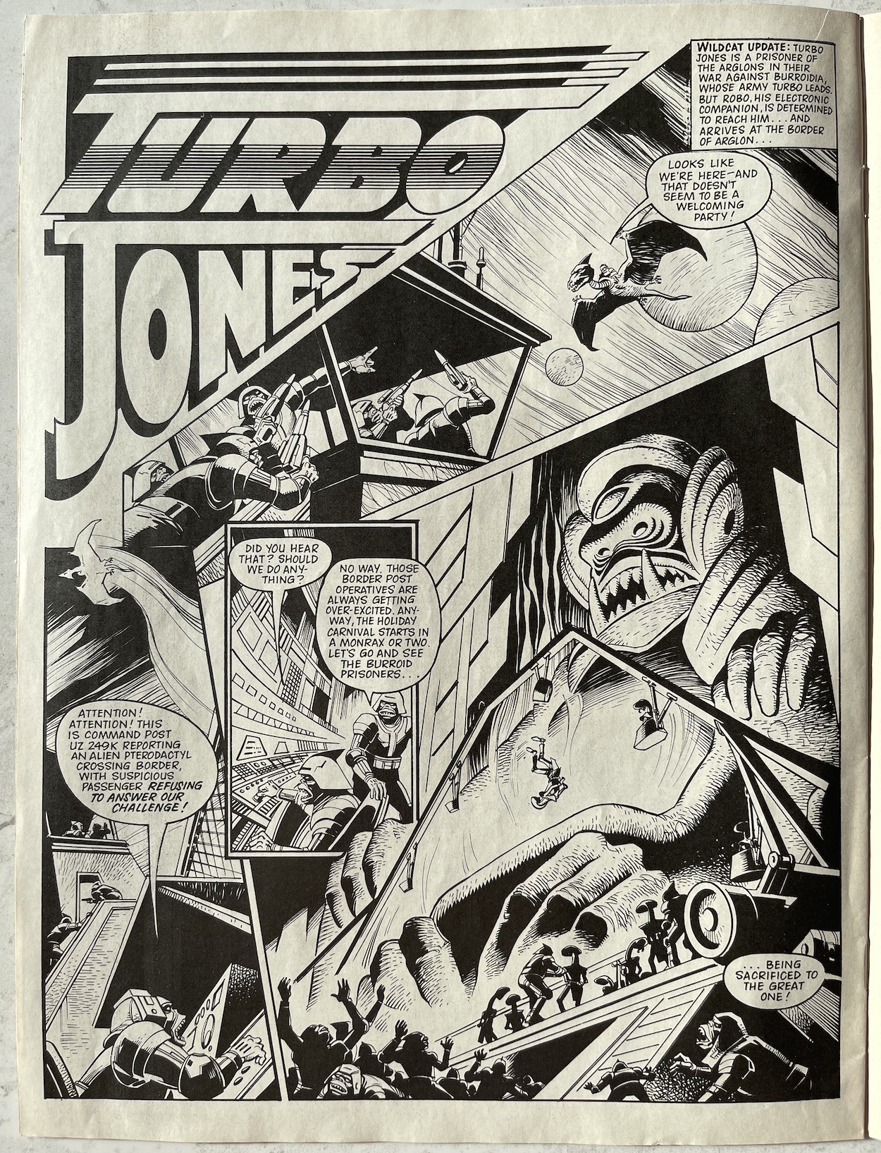 In fact, I’d go as far as to say every couple of pages here could’ve been made into a full chapter in the original comic without feeling too padded out. It does feel a bit rushed as a result but that’s probably only because I was so used to the slow build and ever increasing drama of the fortnightly serials. That’s not an problem unique to Wildcat. I remember when I used to buy 2000AD how I’d sometimes feel a bit underwhelmed by some of the strips in the annuals or specials because I was so used to epic storytelling.