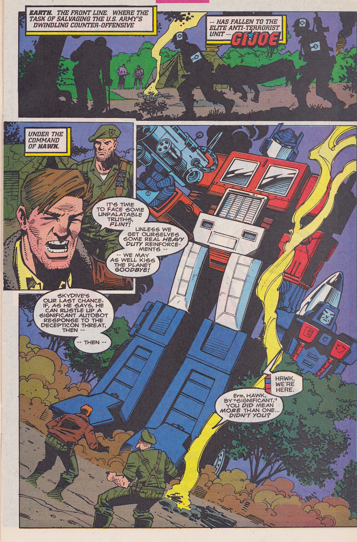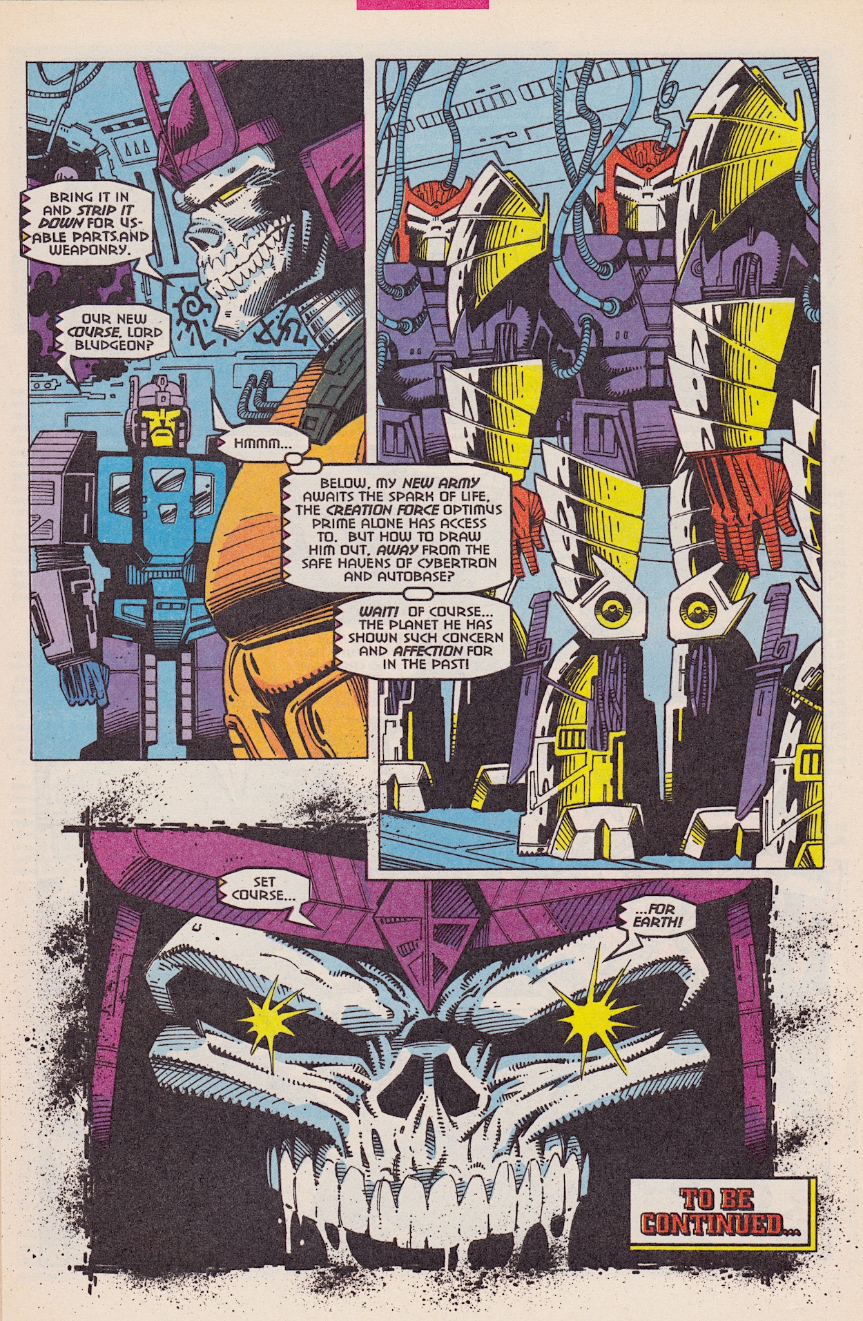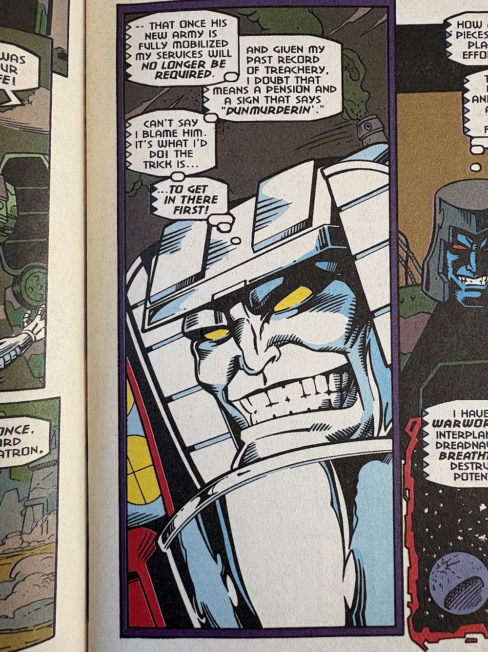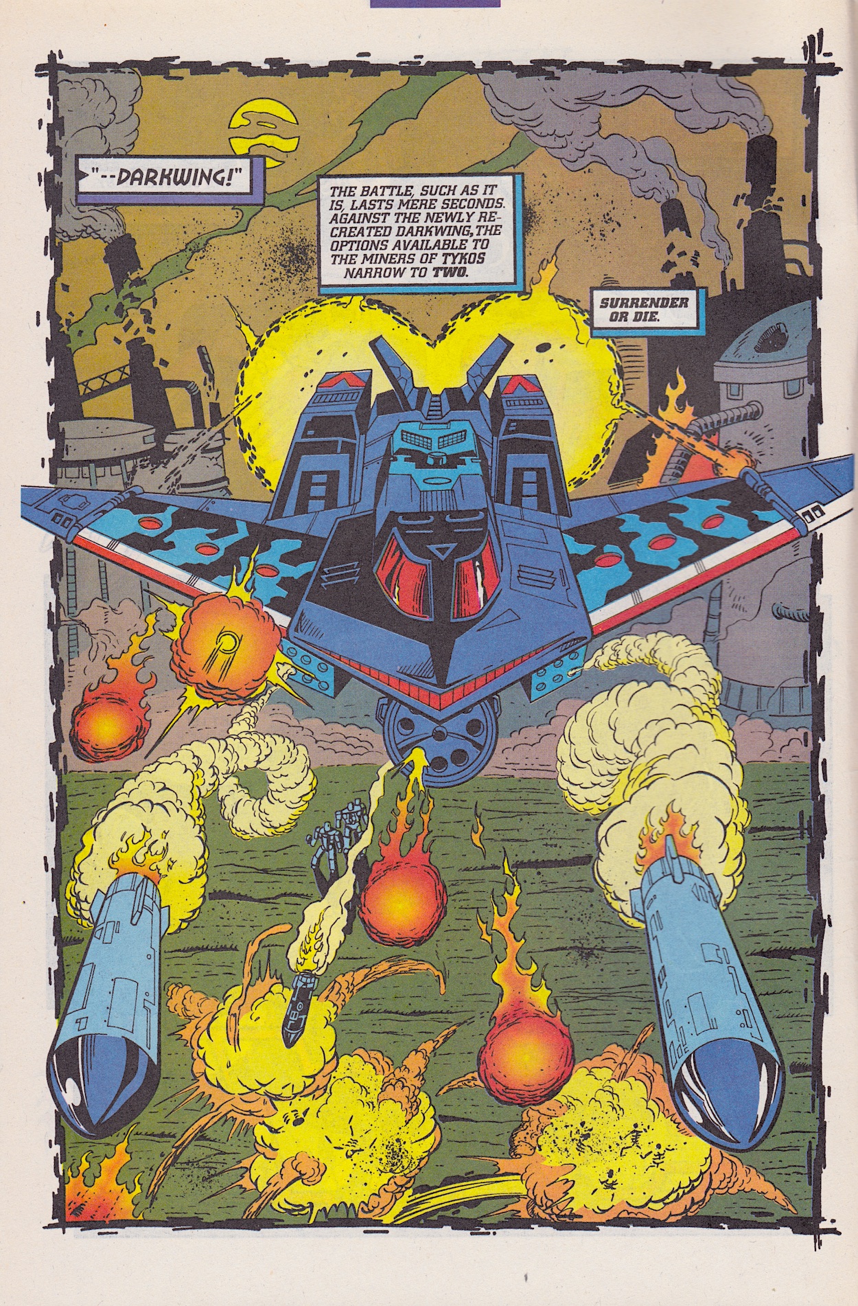 The attack goes flawlessly for the Decepticons but in the background one of their ilk isn’t happy with how he’s being used; he’s been resurrected for a single-minded purpose just to be disposed of when the job is done. No prizes for guessing it’s Starscream, once more raising the questions of why Megatron chose him in the first place and why has he a head full of human teeth.