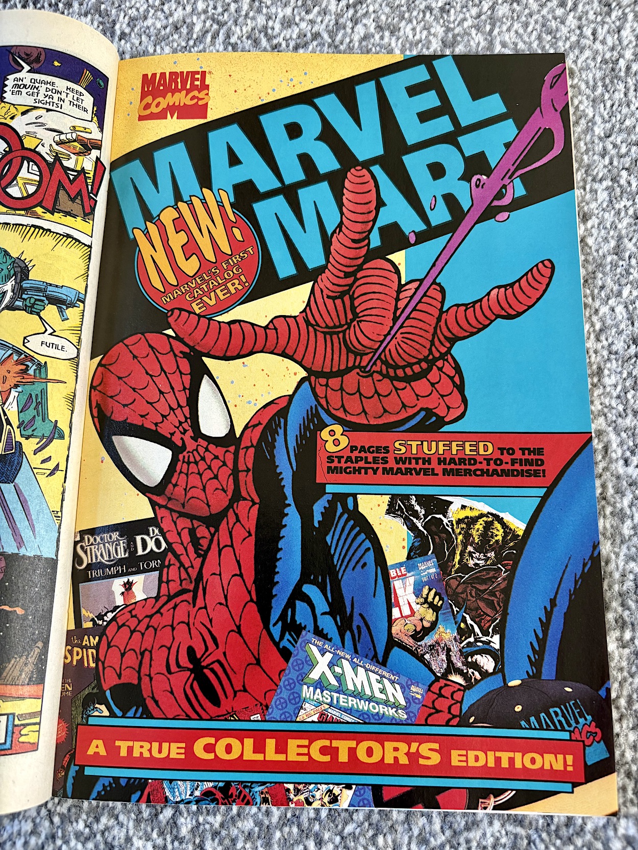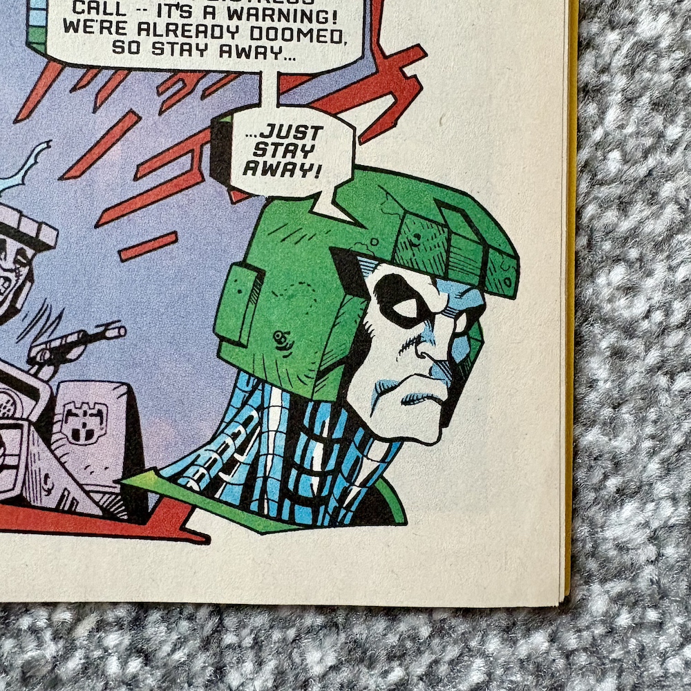 In the middle of the comic is an eight-page pullout and a removable cardboard order form for the Marvel Mart, which according to its own cover is “Marvel’s First Catalogue Ever”. It says it’s full of rare merchandise yet the majority of it is comics and box sets, with merchandise relegated to the usual t-shirts, posters and the like on one page. I did spot the Transformers Generation 2 box set that I owned, which confusingly didn’t contain part one of the G.I. Joe crossover. (Possibly because only four issues would fit inside the boxes used.) It’s basically an eight-page advert.