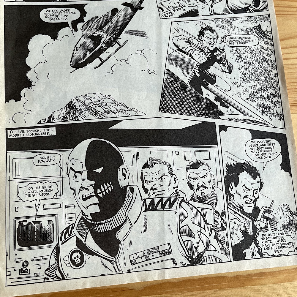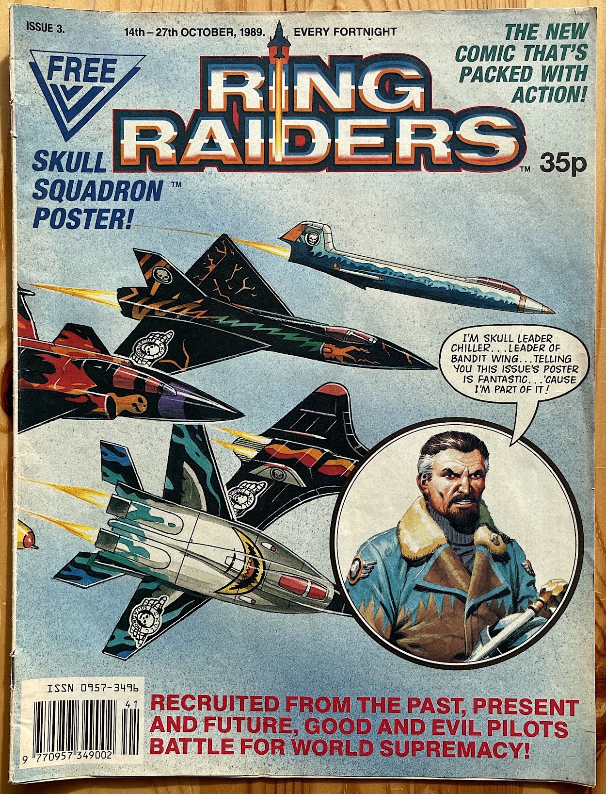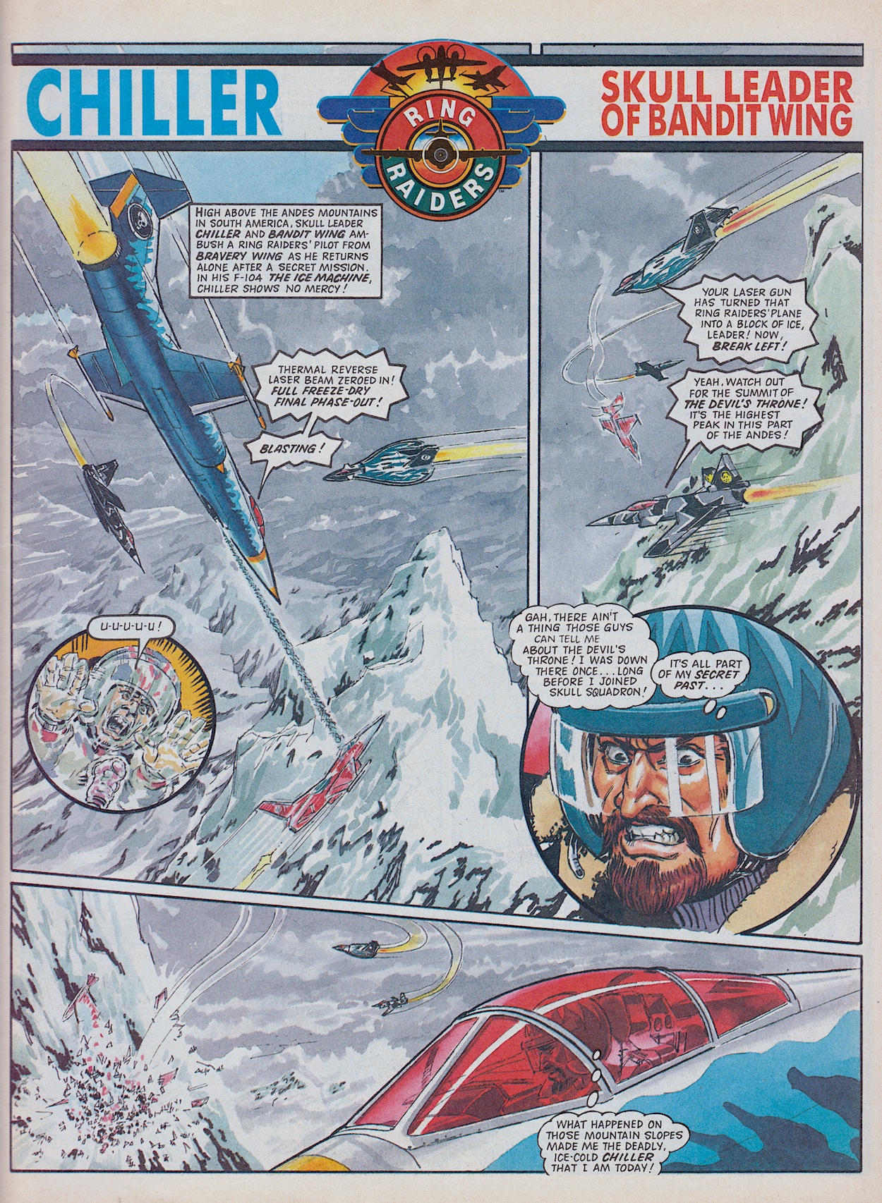 Skull Commander Chiller pops up on the cover to the latest Ring Raiders introducing the free Skull Squadron poster, which I’ll show you later in the review. He’s easily the star inside too; a main character of two strips and he’s also the star of the pin up. Chiller was a fan favourite, so much so that his Wing was hard to come by. By the end of my obsession over a year later I still hadn’t been able to add him to my collection.