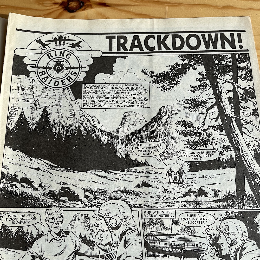The cliffhanger gives us no possible clues as to the outcome. Can you imagine my reaction to this, knowing there wouldn’t be another issue in a fortnight? Only with hindsight am I able to say reading the Ring Raiders Special (which contained another five chapters to Trackdown) was incredibly exciting, and that if the comic had continued #7 would’ve contained the single most exciting piece of strip action I’d ever come across up to that point. That’s not just hyperbole, as you’ll see next time.