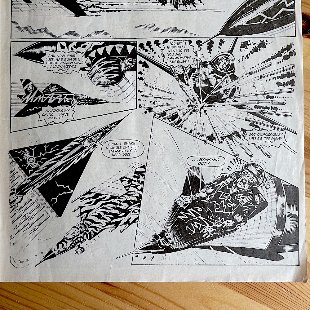 Adding insult to injury, Chiller is almost killed when his leader fires upon the sub again, not knowing he’s been pulled onboard and is assuming control. The episode is left with us unsure if Chiller is going to complete his mission or take revenge on Scorch. There’s a certain air of Starscream about this character. What I love the most is Carlos Pino‘s energetic, colourful art. In particular that panel of the F-104 being shot down. For my younger eyes his work was an action-packed start to each issue.