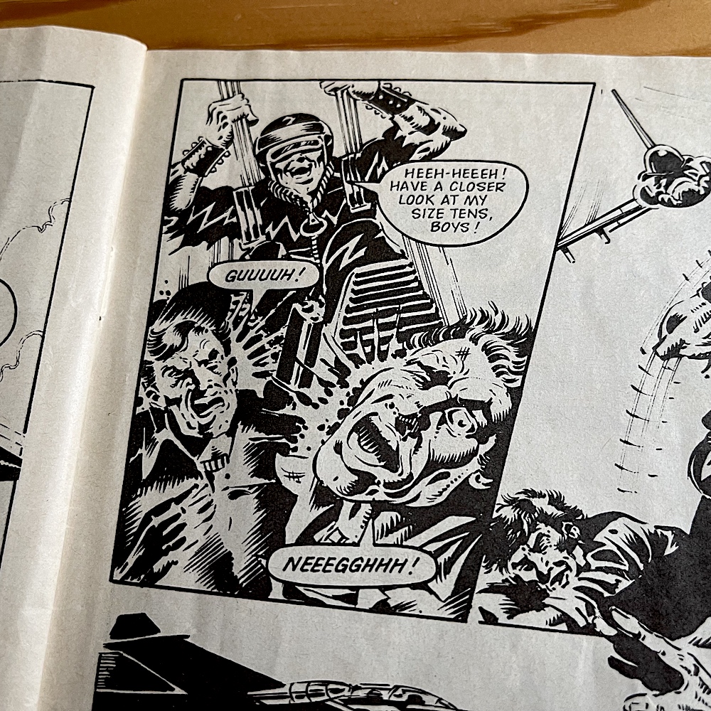 He’s on the cover, he’s the star of a brand new strip and now Wraither is also in charge of the letters page. None of the contributions mention him and he isn’t happy about it as you’ll see. This is one of the things I loved about our comics this side of the pond, how the characters would interact with us in often cheeky, sarcastic ways. I never sent anything in myself. Even though it had become a bit of a habit by this stage, Ring Raiders simply didn’t last long enough for me to get around to it. This would be the last we’d see of the readers too, as the special the following year wouldn’t contain any more of their contributions.