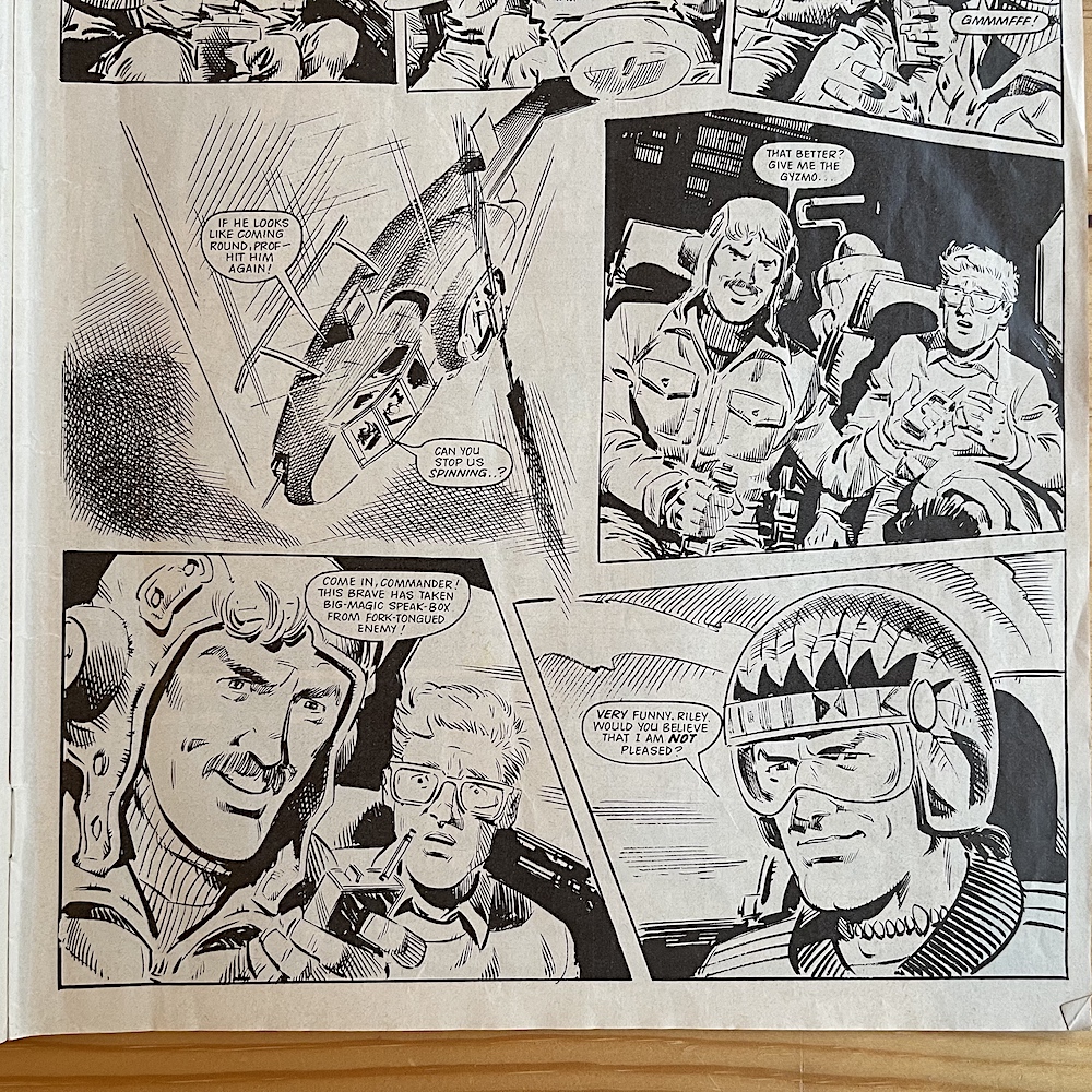 The humour between them is very natural and I think it’s wonderful how the wing’s leader, such a noble warrior on the surface, just wanted to show off. Some comics could be painfully obvious in being licenced fare, their one purpose being to sell toys, the stories feeling little more than action figures moving about in long, elaborate adverts. But it’s a testament to Barrie as the driving force and his assembled creative team that Ring Raiders feels like it’s an action adventure comic first, a licenced title second.