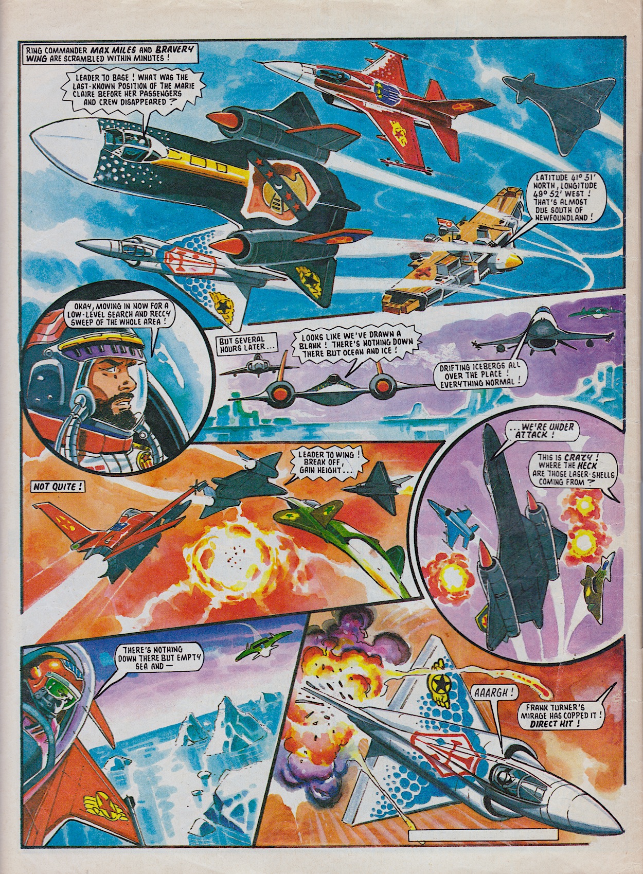 With all of the schoolboys from the ship and its crew missing Bravery Wing and their commander Max Miles get their first comic mission and come under heavy fire when checking out the location of where the ship last checked in. But below there is only ice. Ice and open waters. Where is the attack coming from? The big reveal was another part of the Special worth waiting for if memory serves.
