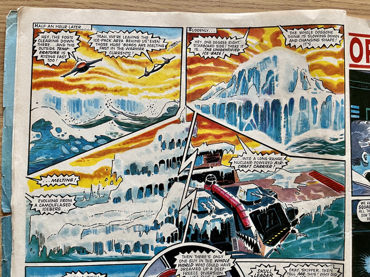 Making clear references to the Titanic, writer Barrie Tomlinson and artist Carlos Pino return in what would turn out to be a fantastic story. It would be the mission that would introduce the Skull Squadron’s Mobile HQ to the Ring Raiders, that particular chapter set for an issue originally set to be published just in time for Christmas, potentially even the festive issue edition itself.