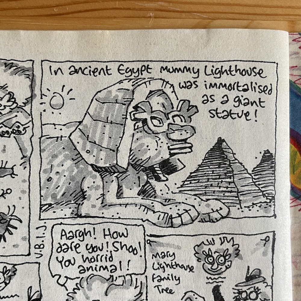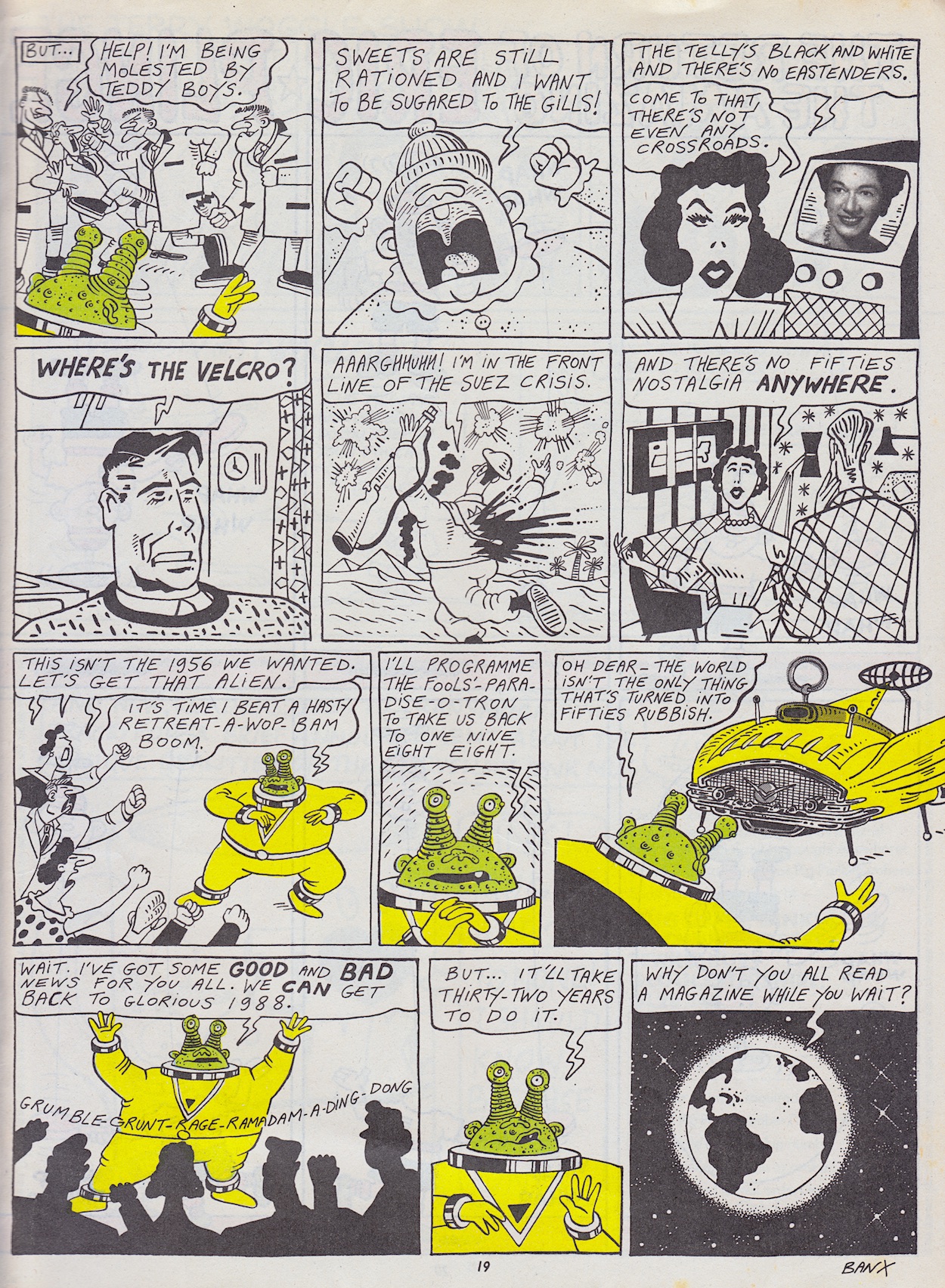 Only a few of the contributions mention the fact this is the final issue, while a couple more don’t reference it directly but clearly knew it was the end. For example, Chris Sievey’s Frank Sidebottom doesn’t say anything about it but does sign off with details of where readers could see him on TV, listen to him on the radio or meet him in person before saying thanks and that he’ll see everyone soon. Which he did, as he never seemed to be off children’s television at the time.