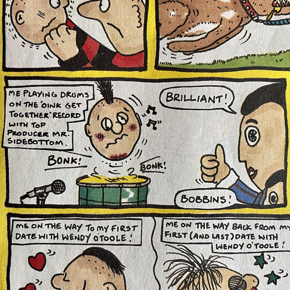 We all knew that despite Frank being a superstar he still lived at home with his mum so I love the ending which, intentionally or not, is a callback to an earlier episode of Frank’s which referred to him going to bed at 9 despite being an adult. Having the final caption as a never-ending cycle back to the beginning feels like the perfect way for him to wrap up the final regular contribution to OiNK he crafted.