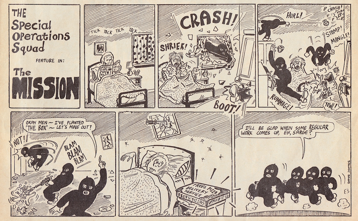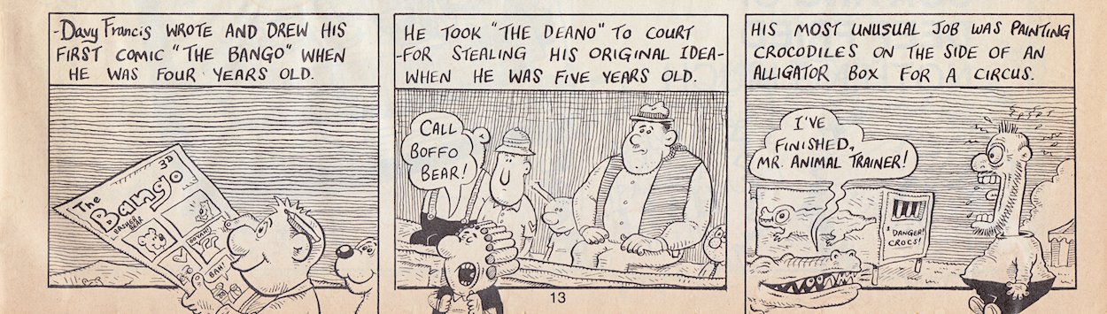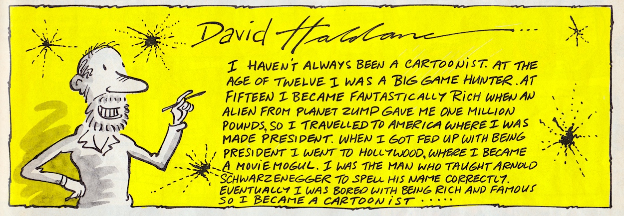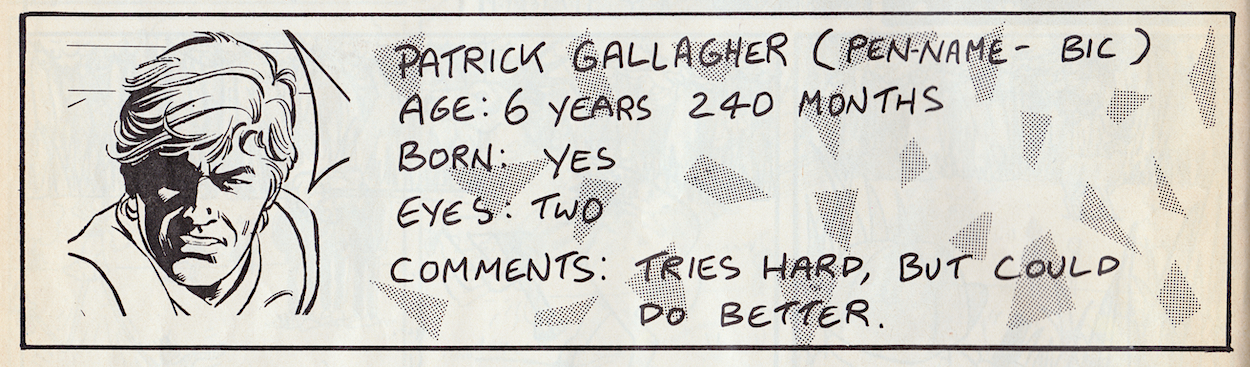 “No idea how to answer this. There were a couple of strips in the later issues which I had to draw in a bit of a rush, and some of the drawing was very ropey. So if everyone would be kind enough to overlook the ropey drawings, it’d be much appreciated.”