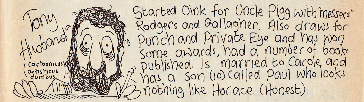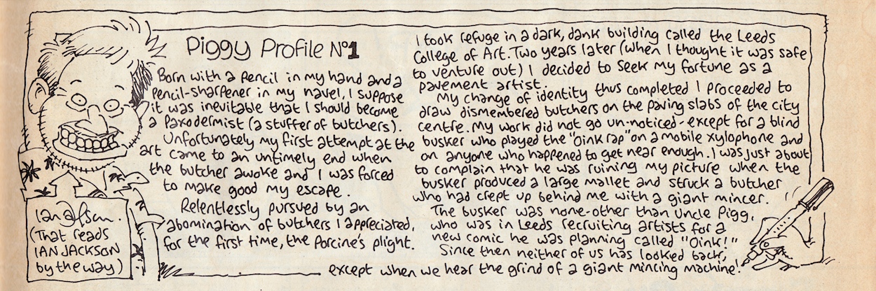 “The friends I met, my fellow artists, the readers who are artists and writers themselves who say OiNK was such an influence on their work. I loved every minute I worked for OiNK, I would have done it for nothing!” (“What?!” – Uncle Pigg)