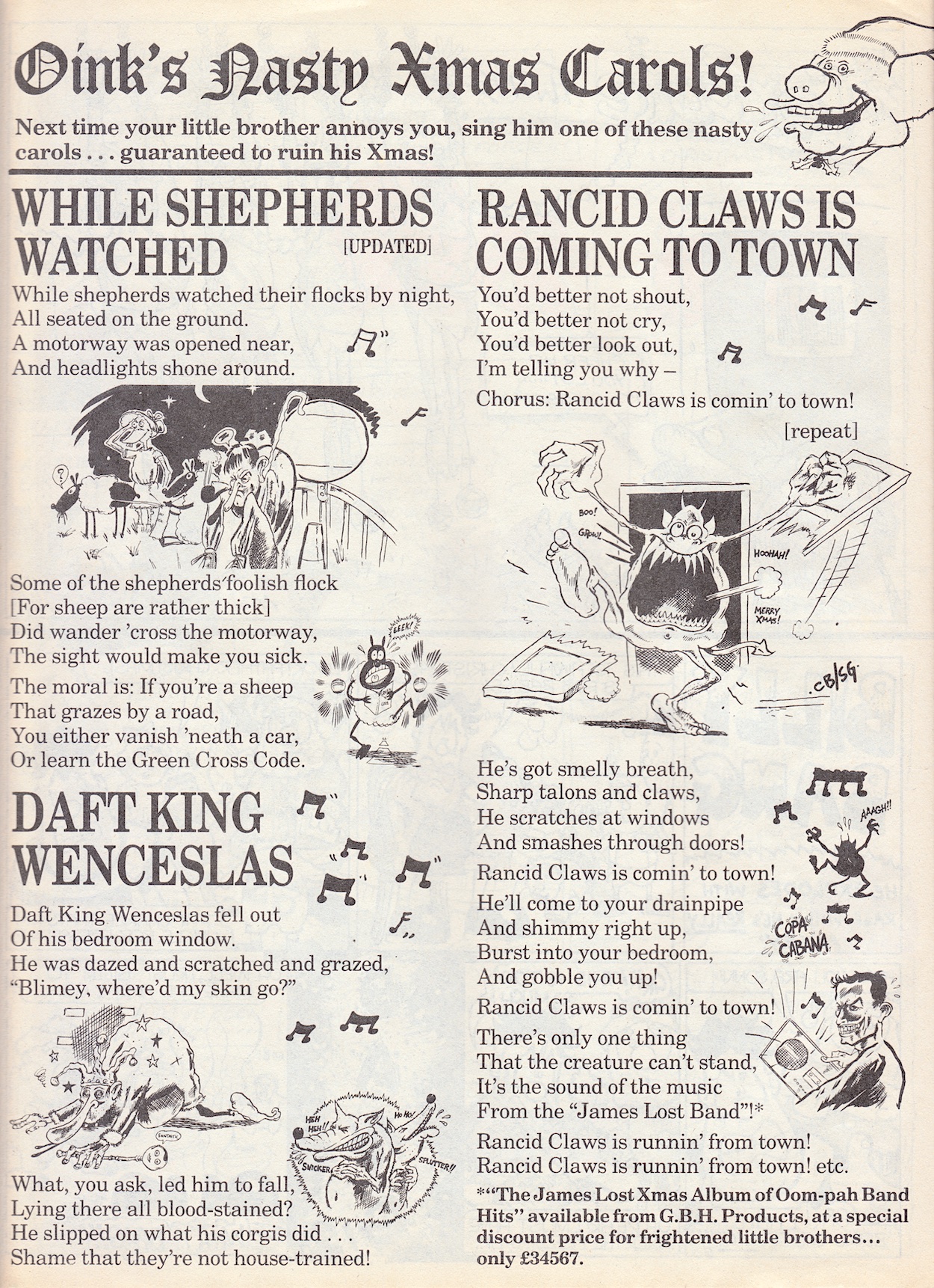 As I mentioned in the preview for this issue there’s a page in here that would end up being read out in the House of Commons. No piggy prizes for guessing correctly this was it. OiNK would actually tell its readers about this in a future issue so we’ll check back in on what happened when we get there. I wonder what Howard thought of that! It feels very current too, especially the digs it takes with points five, six, seven and the final sentence. Unfortunately some things just don’t change, eh?