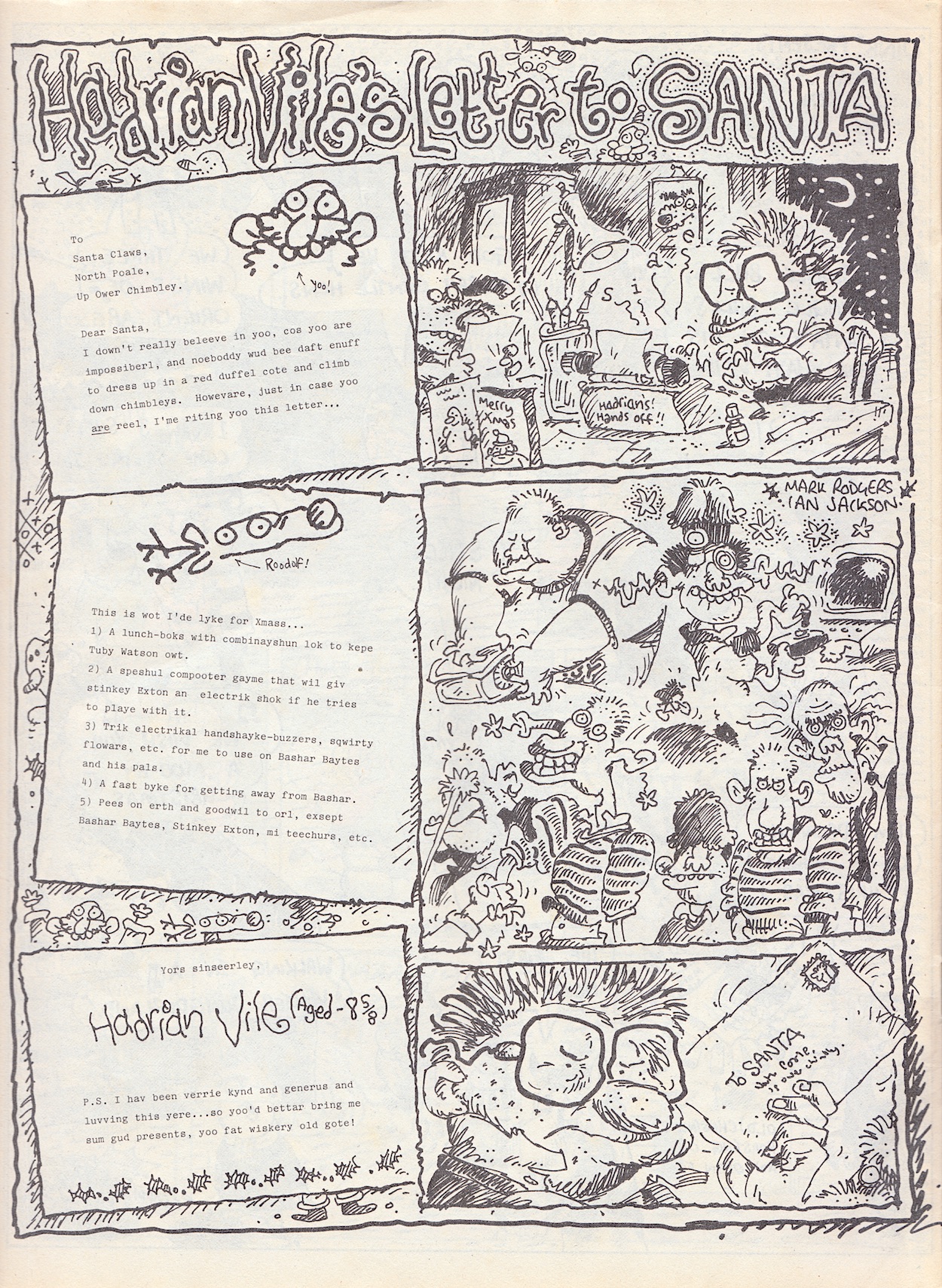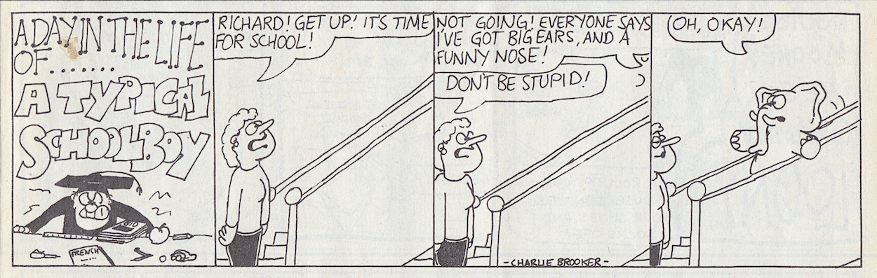 Charlie’s work as both cartoonist and writer in OiNK is a highlight of the whole run for me. He contributed a lot for still being at school, appearing on no less than five pages out of the 42 pages of new content here (#6’s Watery Down and two of the OiNK Superstar Posters are reprinted). Speaking previously with co-editors Patrick Gallagher and Tony Husband on separate occasions both praised Charlie’s work, remembering how the amount of his contributions kept rising, so impressed were they with what he was producing.