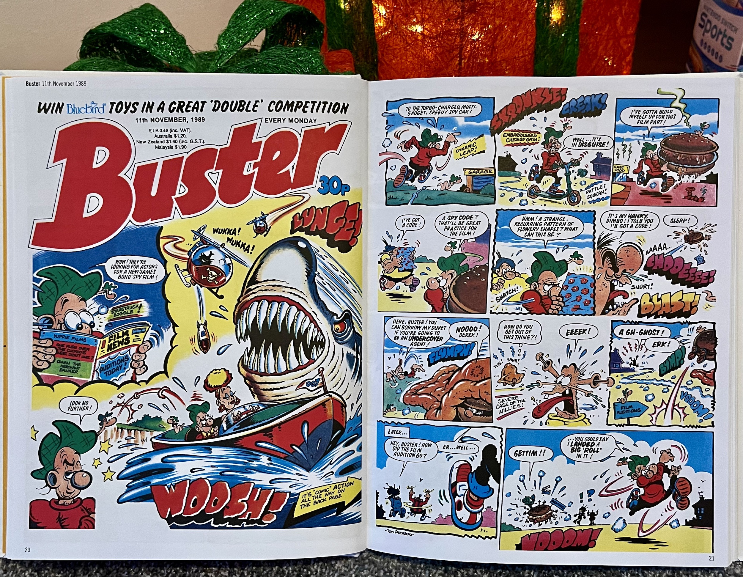 Drawn by James Hansen, here we see him unwittingly change colour because of his temperature for the most part, and it’s really enjoyable. It’s also made something of a theme out of very funny letterbox moments this Christmas on the blog. (See Kids’ Court in the Big Comic Book 1989 review.) It’s madcap fun, bouncing between different predicaments for Ricky with Bruiser always on his tail. I know Nipper was a comic aimed at a younger audience than Buster but Ricky Rainbow fits in perfectly here. He’s one of the best parts in this whole book.