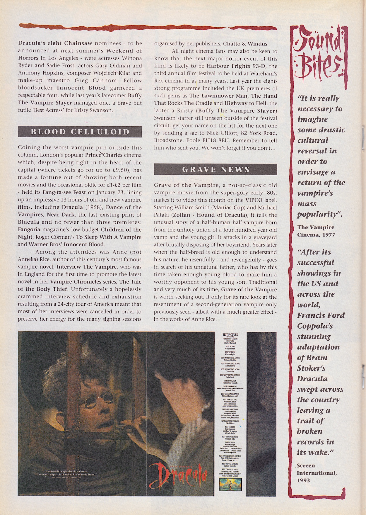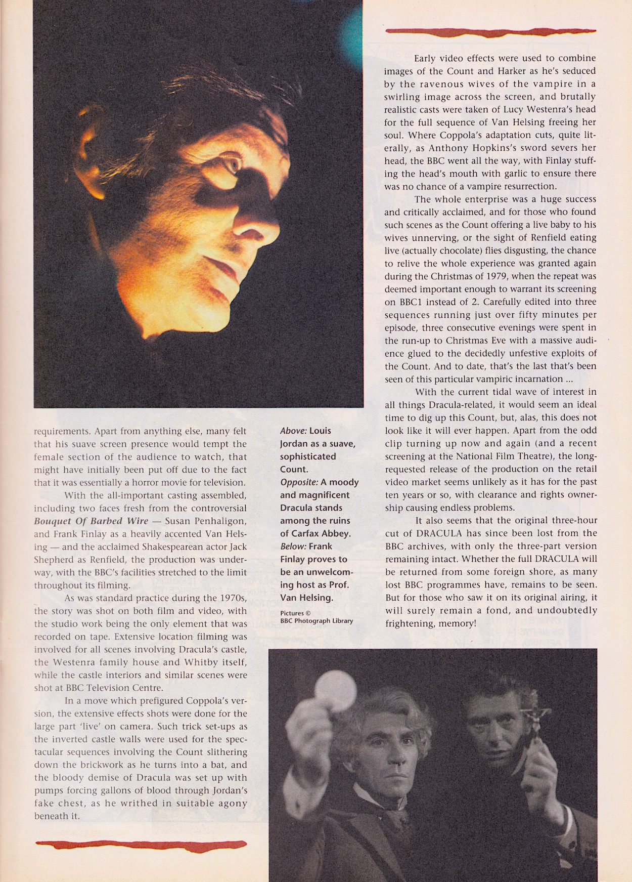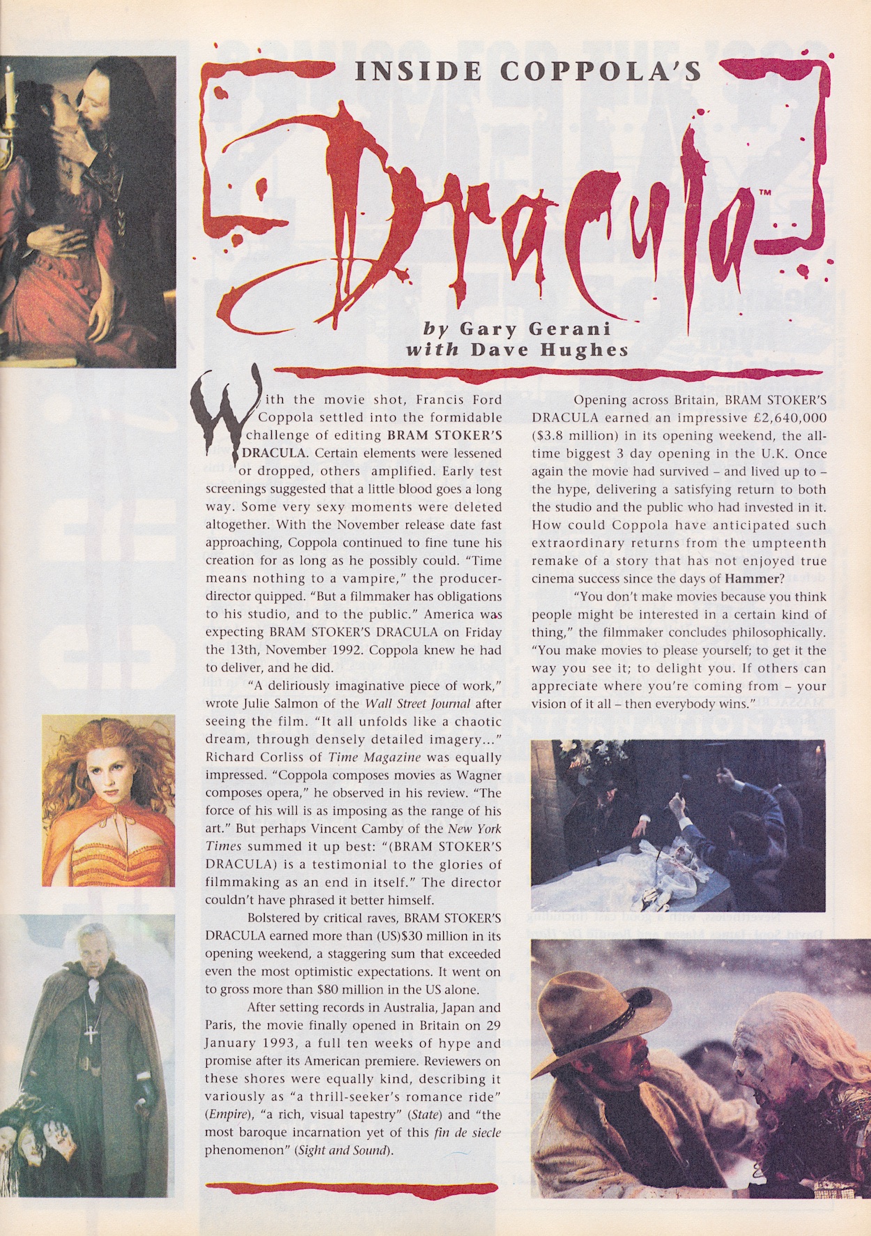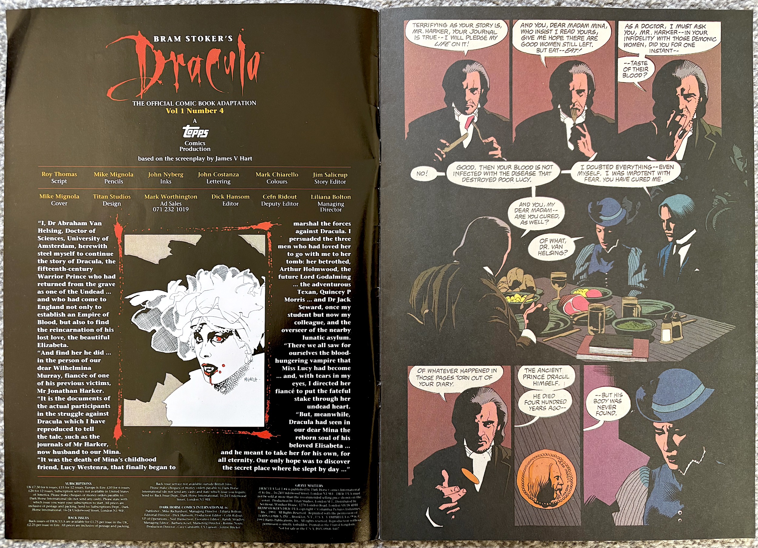 On to the Bloodlines news pages. The film was a “loose adaptation”? Oh dear, is Dave Hughes turning against the movie he hyped so much now that the comic is no longer a tie-in? Francis Ford Coppola’s movie updated the racist undertones of the original novel to modern sensibilities, but to describe it in this way is rather odd. I’d forgotten all about the fact the movie brought a brief resurgence in monster movies and I’d like to see Robert De Niro as Frankenstein’s monster, so that might be one for this Hallowe’en.
