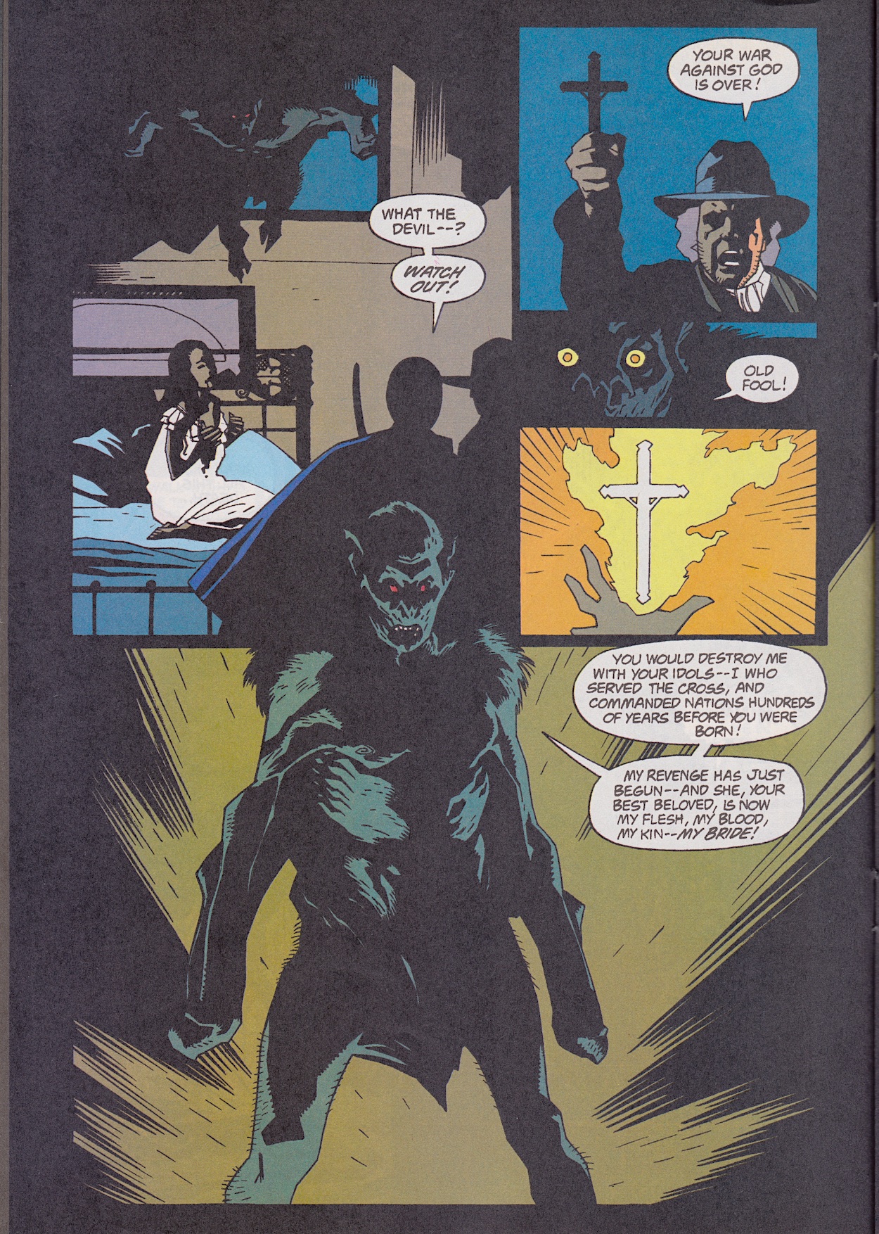 The 13-page second part of Roy Thomas’ strip kicks off with defeat. Vlad’s time in his late father’s role of Prince of Wallachia was short-lived after the Sultan who raised him to be a brutal warrior died. The sultan’s son, Mehmed the Conqueror sought to invade and take over all of Europe, so Vlad allied himself with the Hungarians to defend his home of Transylvania against Mehmed’s ally and the man who killed his family, Danesti. After more history book-like retelling of battles he chases him down.