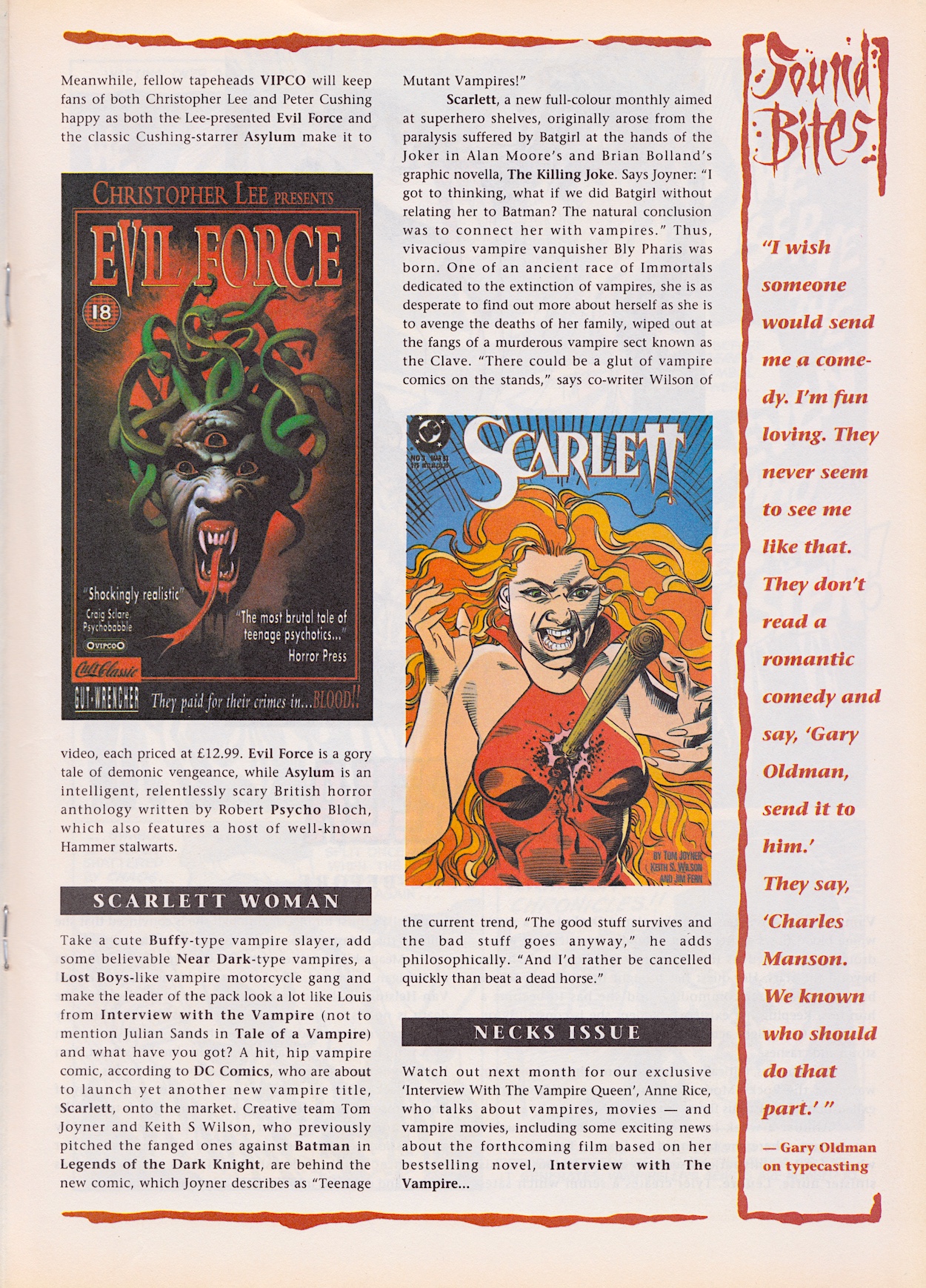 I wonder if The Mummy film mentioned here is what would eventually become the Brendan Frazer and Rachel Weisz movie released six years later? What would Dave have made of it not being a horror film? That section under ‘Neck Romancers’ really hasn’t aged well and it’s shocking to see this reported on as something normal, and yet again the writer’s obsession with Sadie Frost returns, despite the actor being English, not Eastern European.
