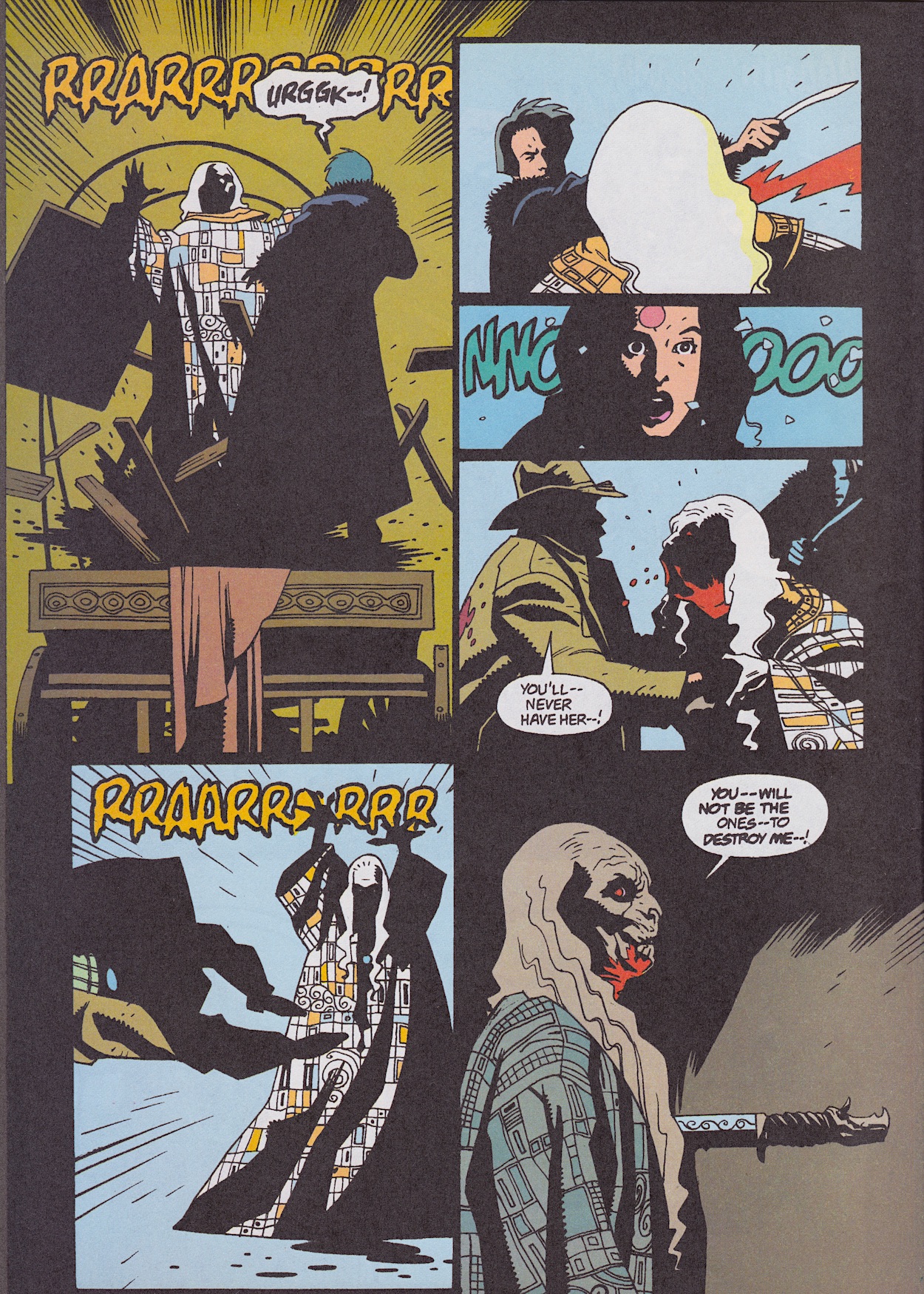 While the script still feels like those strange little historicals found in year one of Marvel UK’s Transformers (Dracula’s script brought to the page with skill by letterer John Costanza) the art once again elevates it. The fact the story slows a bit to concentrate on one battle and its aftermath helps too. It no longer feels rushed and it’s beginning to develop a bit of depth to its main character. That in particular bodes well for future issues.