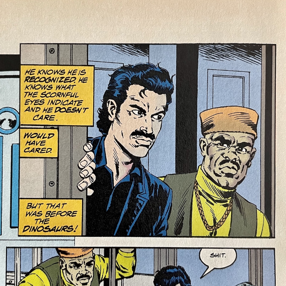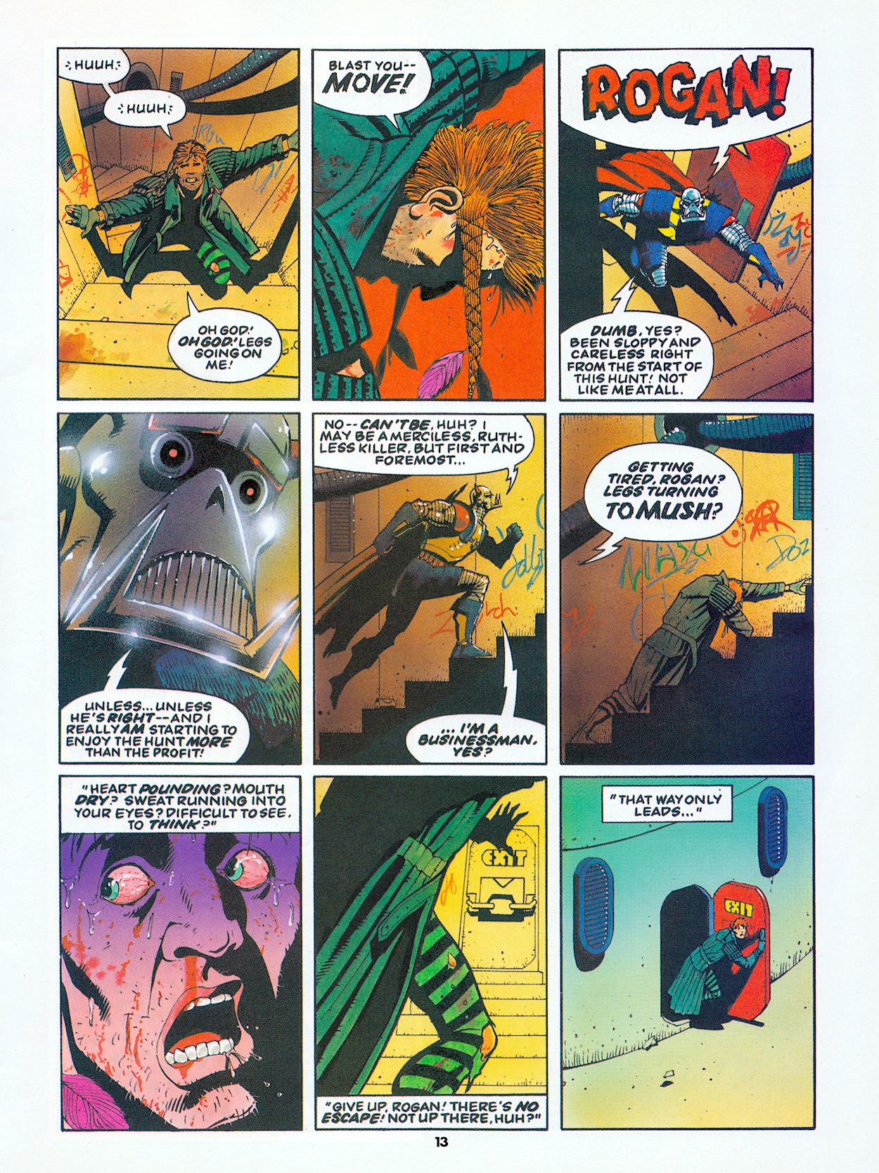 Rogan accuses Death’s Head of enjoying the chase and this really gets into his head. As he runs he questions himself. Is he really enjoying the hunt more than the profit? At the end he believes Rogan is about to take a woman hostage so he kills him, but he was running to her apartment for safety. She’s his partner and she screams that Death’s Head ran him down like it was sport. He walks away, solemn, trying hard to convince himself that she’s wrong.