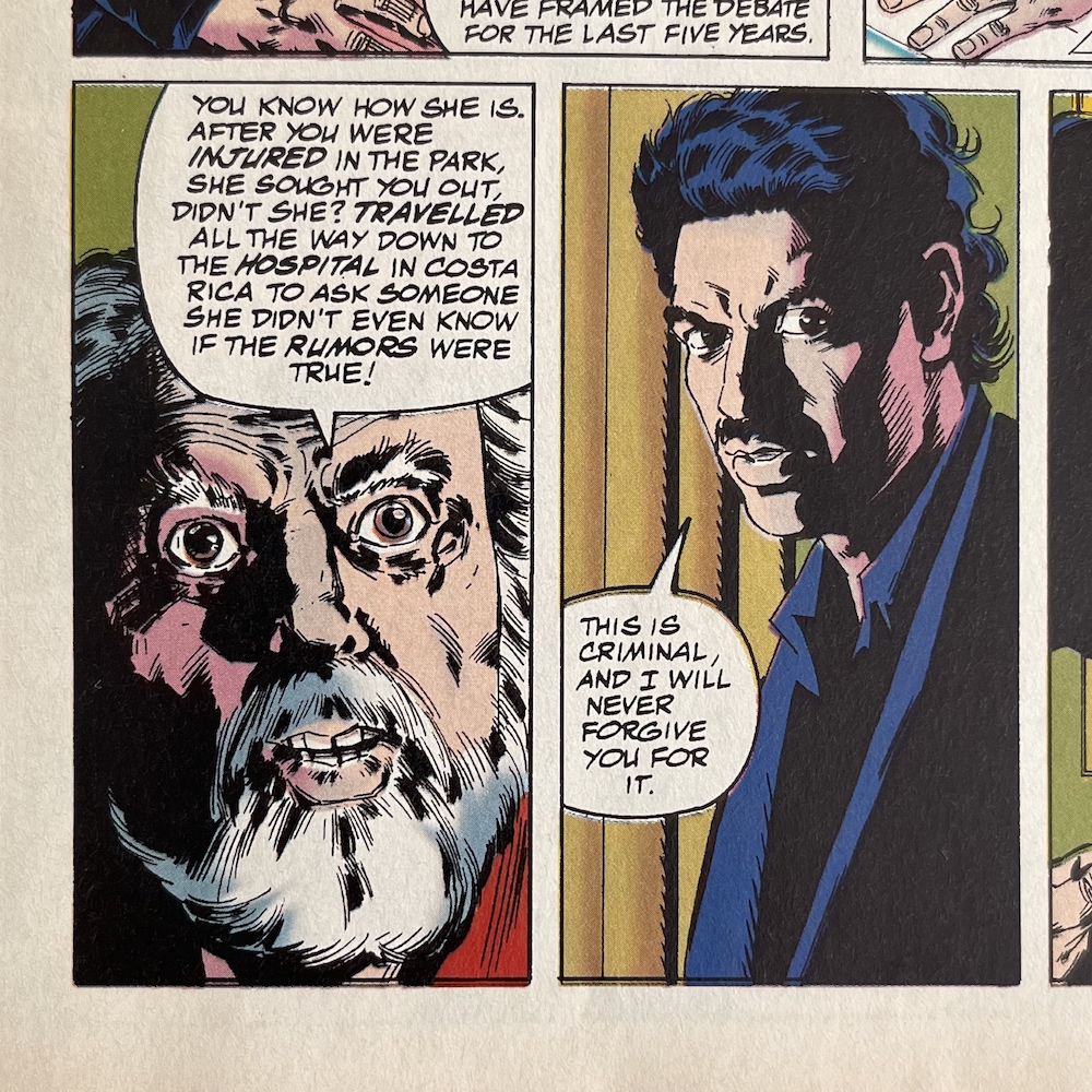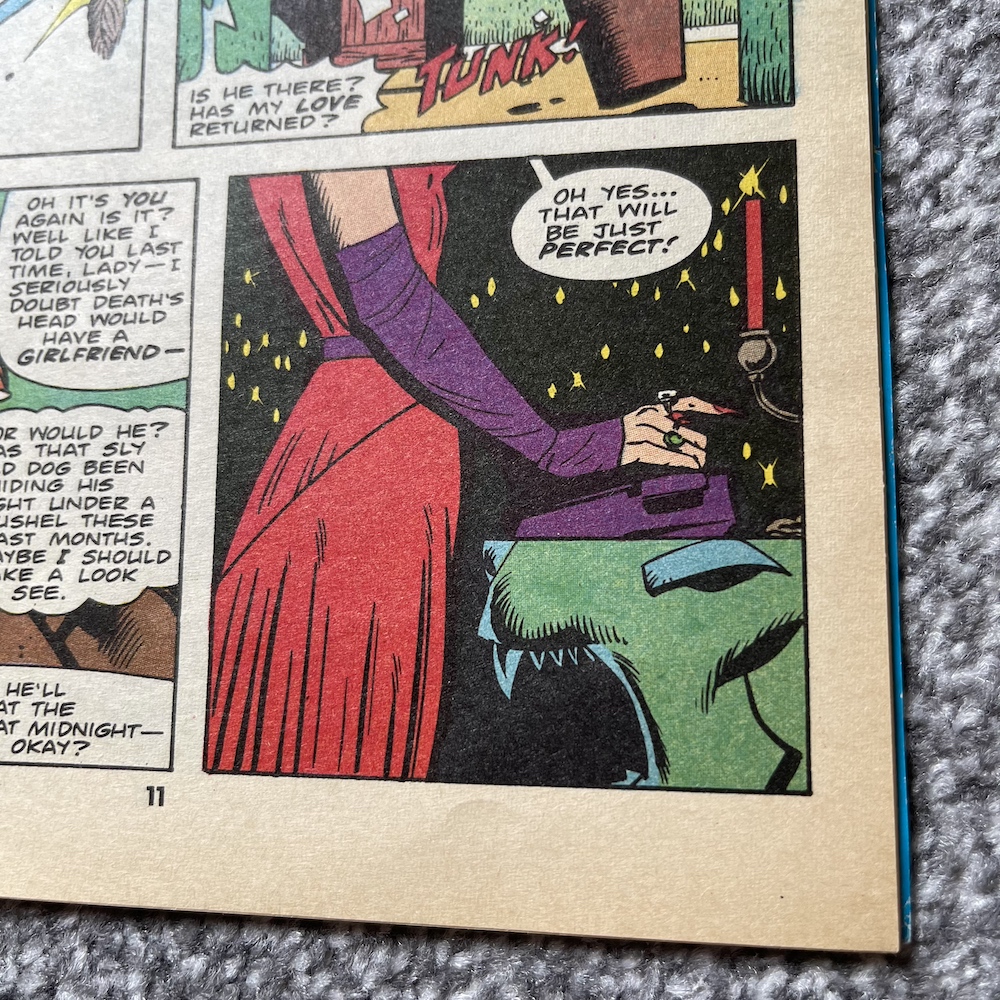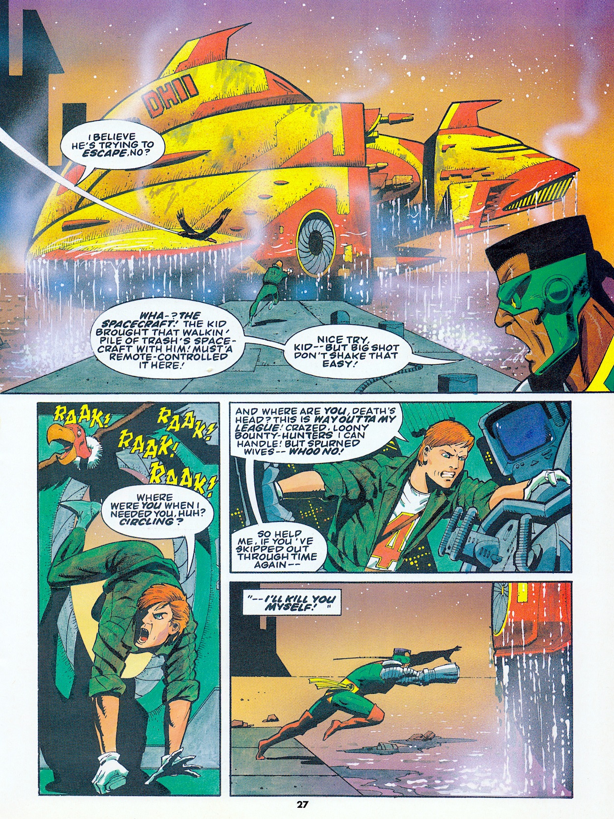 What definitely doesn’t gel for me is the retconning. Don’t get me wrong, I like stories that add to previous ones, that surprise us and take things in new directions or give us previously unknown facts to completely redefine characters and settings. But what I don’t like is when this completely contradicts what went before, and we’d already been told by Death’s Head himself he was created as the plaything of a very rich, very bored individual who he later killed.
