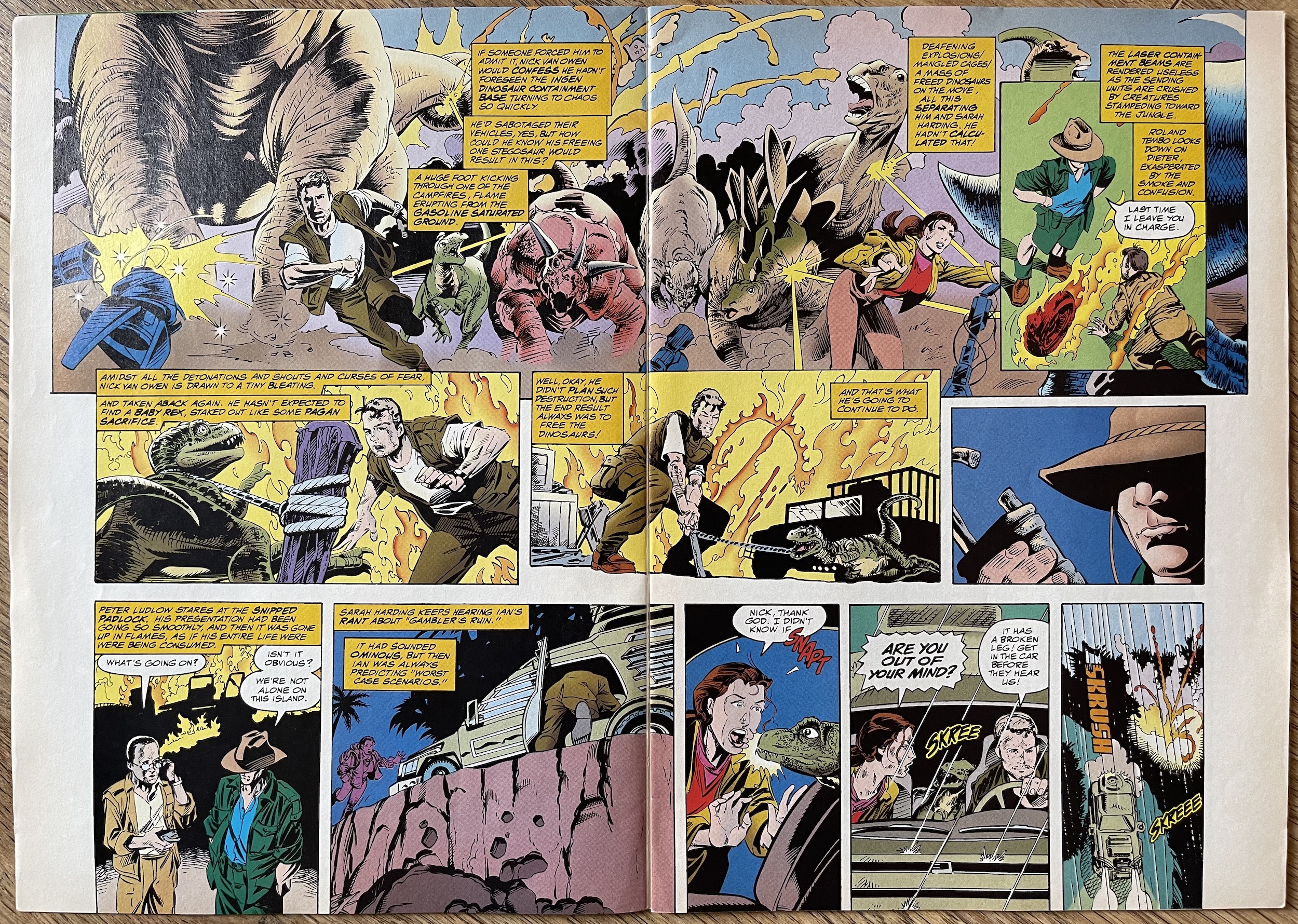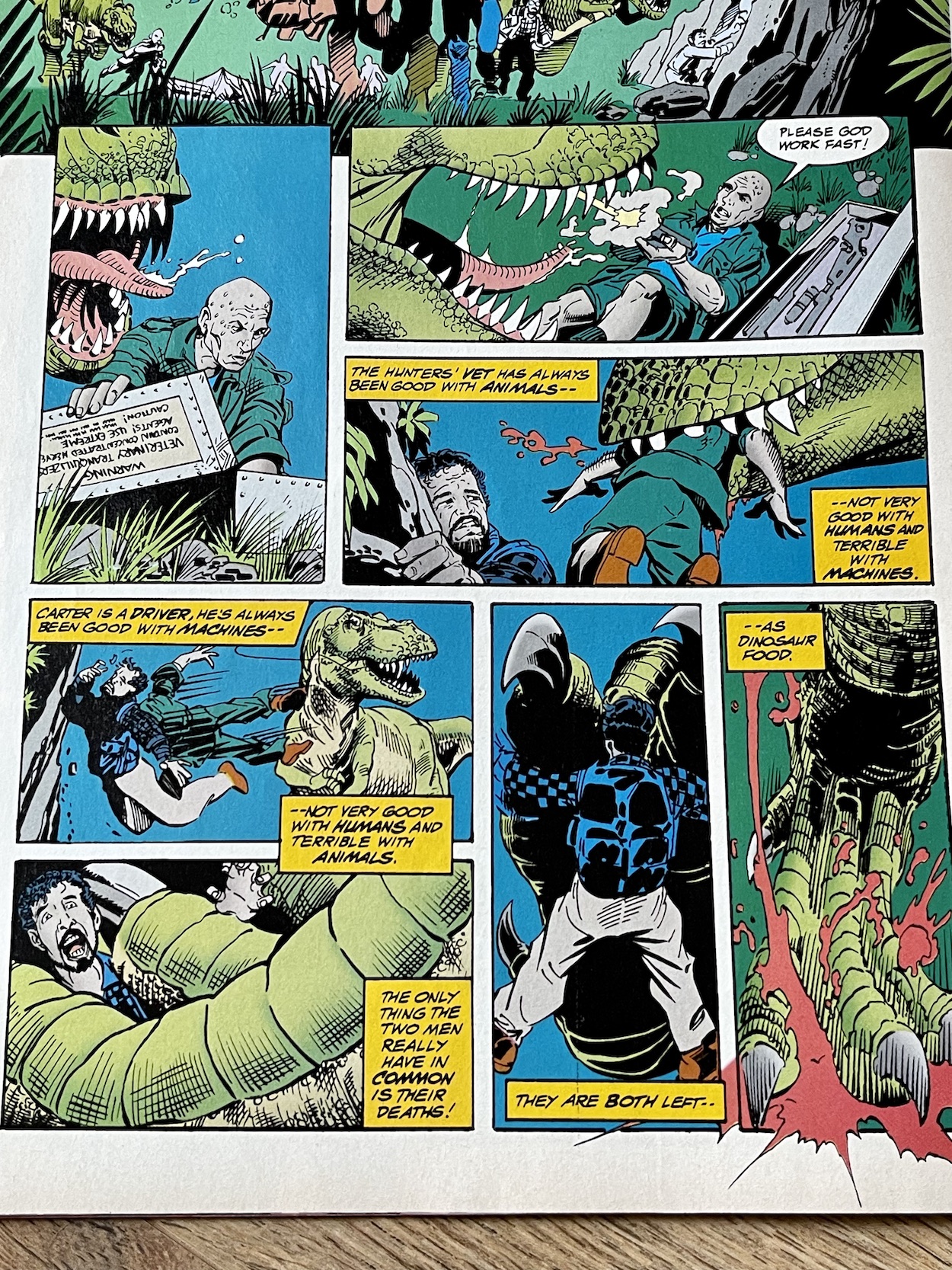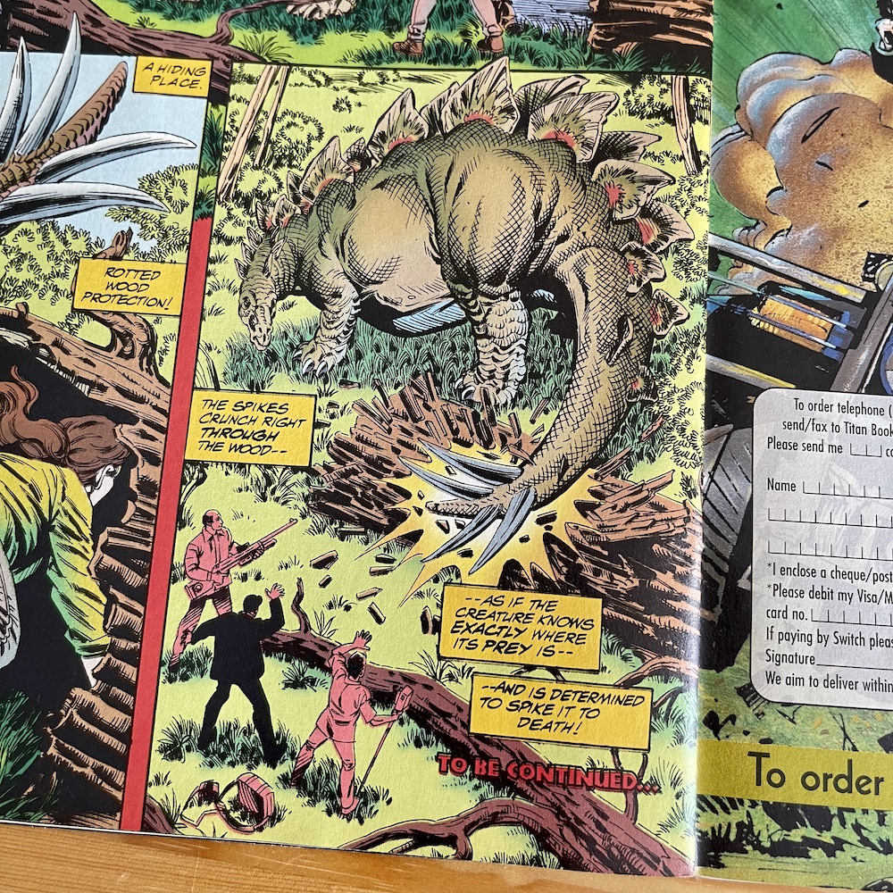 Coming in at 68 pages including a card cover, inside is all glossy and beautiful, the paper upgrade allowing artist Geoff Senior (who co-created the character for the Transformers but only drew one of the monthly issues) to return to the character in style and bring us a new level of colouring. Helen Stone (The Sleeze Brothers, The Real Ghostbusters, Knights of Pendragon) joins the team as letterer, Steve White (Xenozoic Tales, Rogue Trooper, The Lost World Jurassic Park) returns to edit and of course it’s all written by co-creator Simon Furman (Transformers, To the Death, Doctor Who), with Geoff (Hell’s Angel, Dragon’s Claws, Judge Dredd) and Walt Simonson (The Star Slammers, Jurassic Park, Thor) teaming up on the cover.