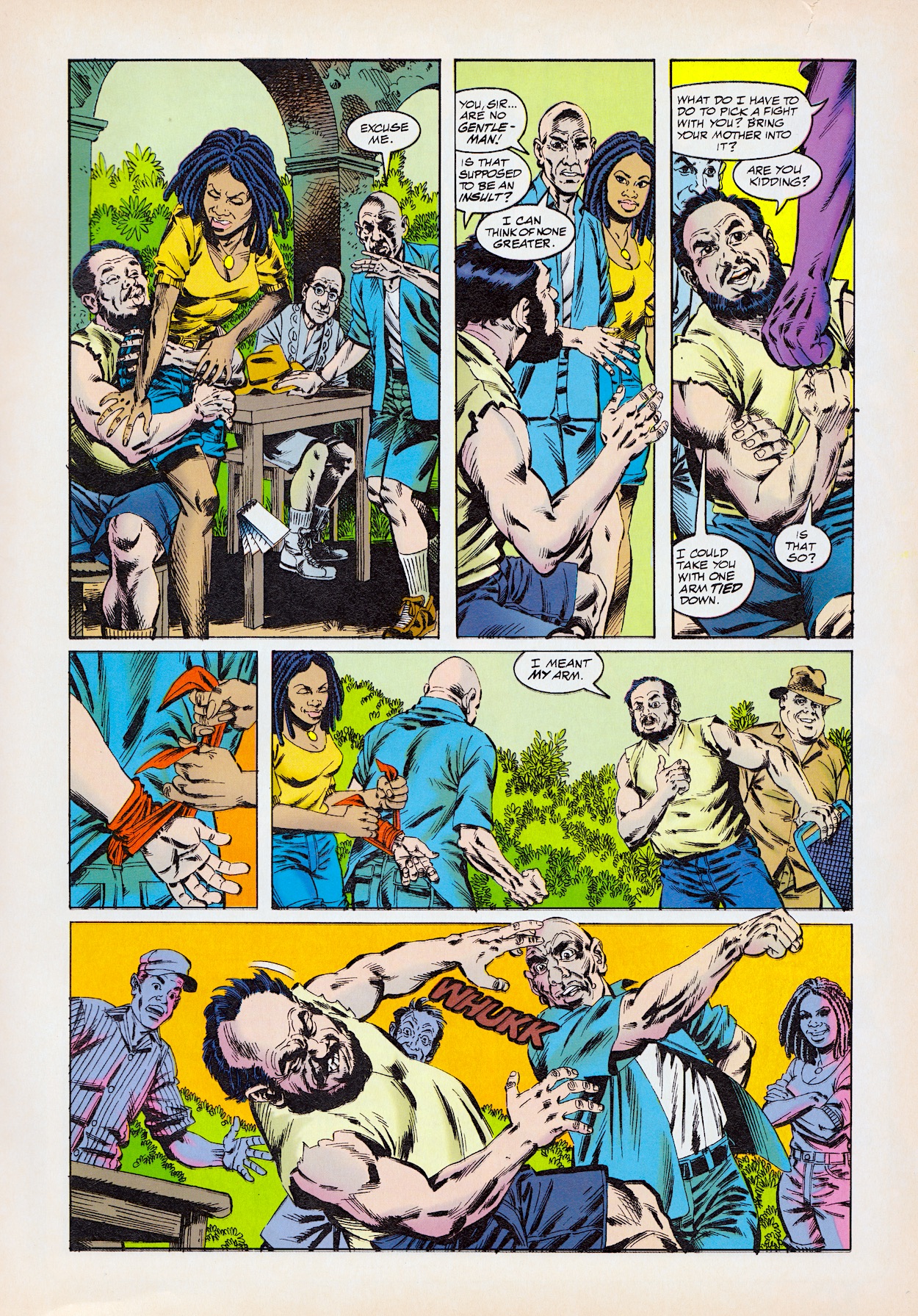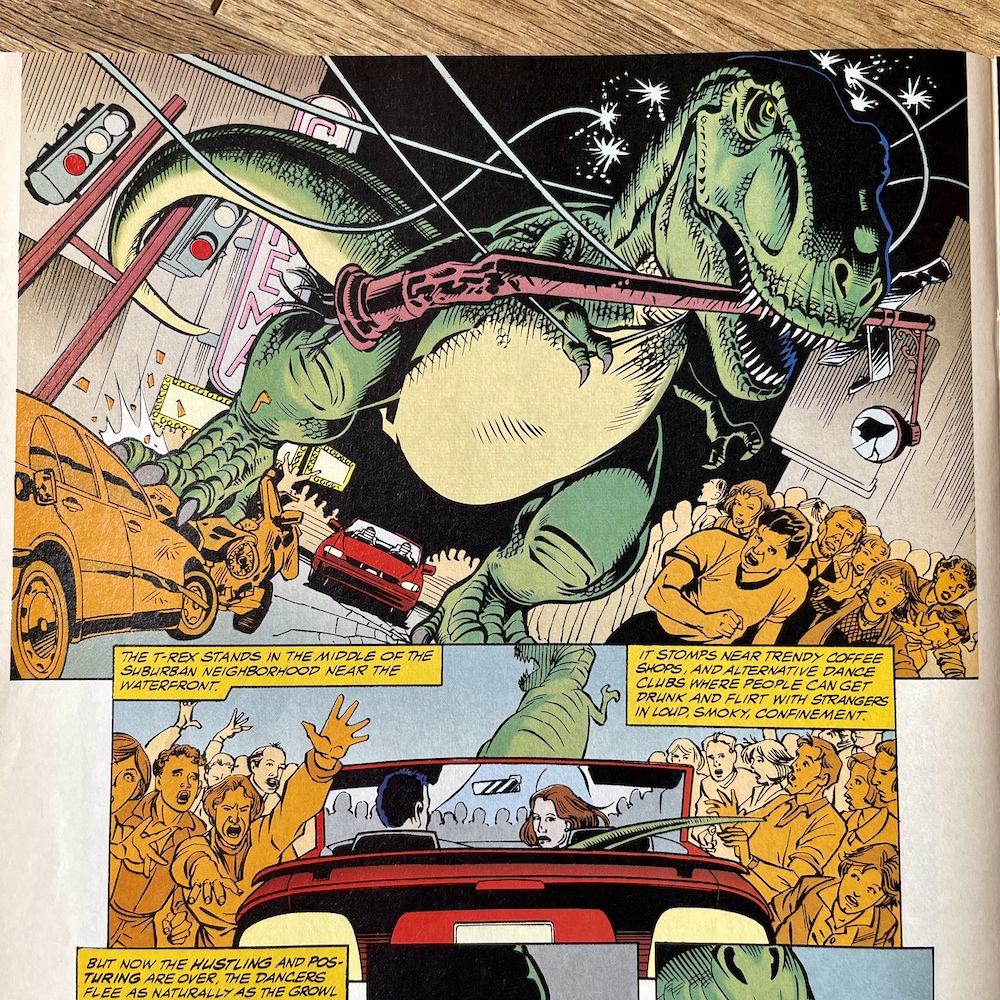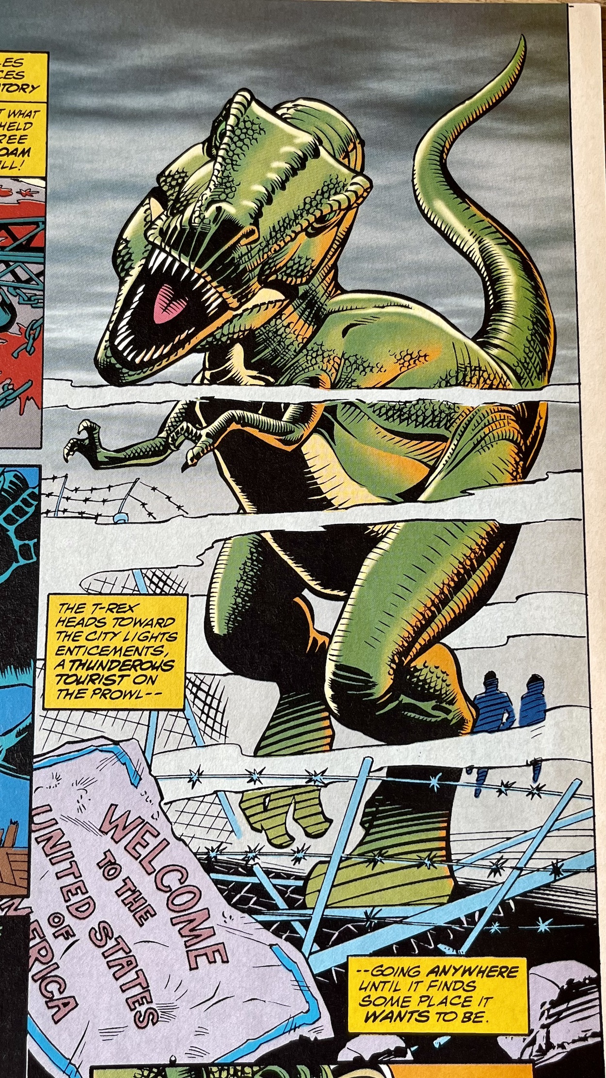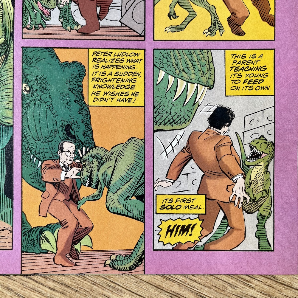 Coming in at 68 pages including a card cover, inside is all glossy and beautiful, the paper upgrade allowing artist Geoff Senior (who co-created the character for the Transformers but only drew one of the monthly issues) to return to the character in style and bring us a new level of colouring. Helen Stone (The Sleeze Brothers, The Real Ghostbusters, Knights of Pendragon) joins the team as letterer, Steve White (Xenozoic Tales, Rogue Trooper, The Lost World Jurassic Park) returns to edit and of course it’s all written by co-creator Simon Furman (Transformers, To the Death, Doctor Who), with Geoff (Hell’s Angel, Dragon’s Claws, Judge Dredd) and Walt Simonson (The Star Slammers, Jurassic Park, Thor) teaming up on the cover.