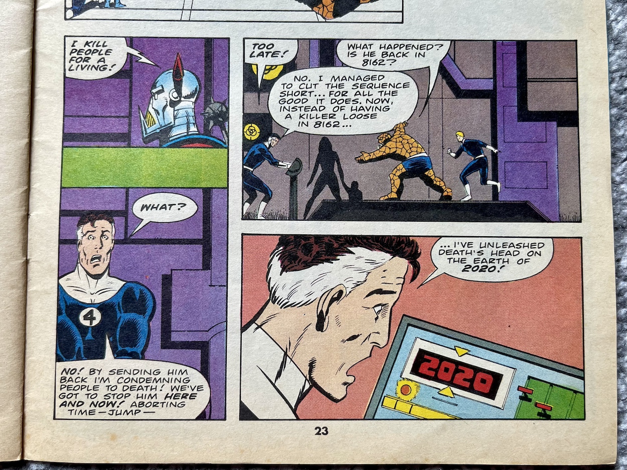 As in the comic the year 2020 looks just as futuristic as thousands of years into the future and given what actually happened in the world in 2020 maybe this version would’ve been preferred. I don’t want to ruin any possible future you may have in reading this graphic novel, so I must warn you this review will obviously contain spoilers. It should go without saying by this stage, this blog is all about classic comics, but more than any of the monthly stories the shocks and surprises in this are an integral part of the plot and thus the reading experience. To tell you about them would be to ruin the experience for you if you intend to read this one day. So consider yourself warned.