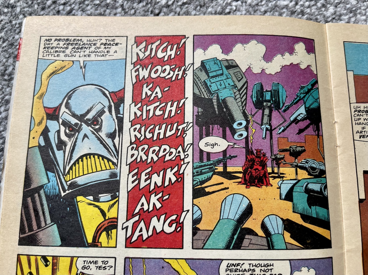 But in an act of revenge Pyra finished programming the robot and made him autonomous with a mind and soul of his own. Not just any mind, a business-like mind, a clinical assassin whose only goal was to do the job and get paid. The opposite of Lupex. She thought this would create the only one who could go up against her husband (whose love of killing drove him). It’s a hell of a story but I’m not sure if it fits within the Death’s Head comic for me. It feels too mythical. Then again, he did fight Unicron, the God of Chaos on the astral plane so maybe it’s just that I’m used to the more grounded stories of the monthly by now.