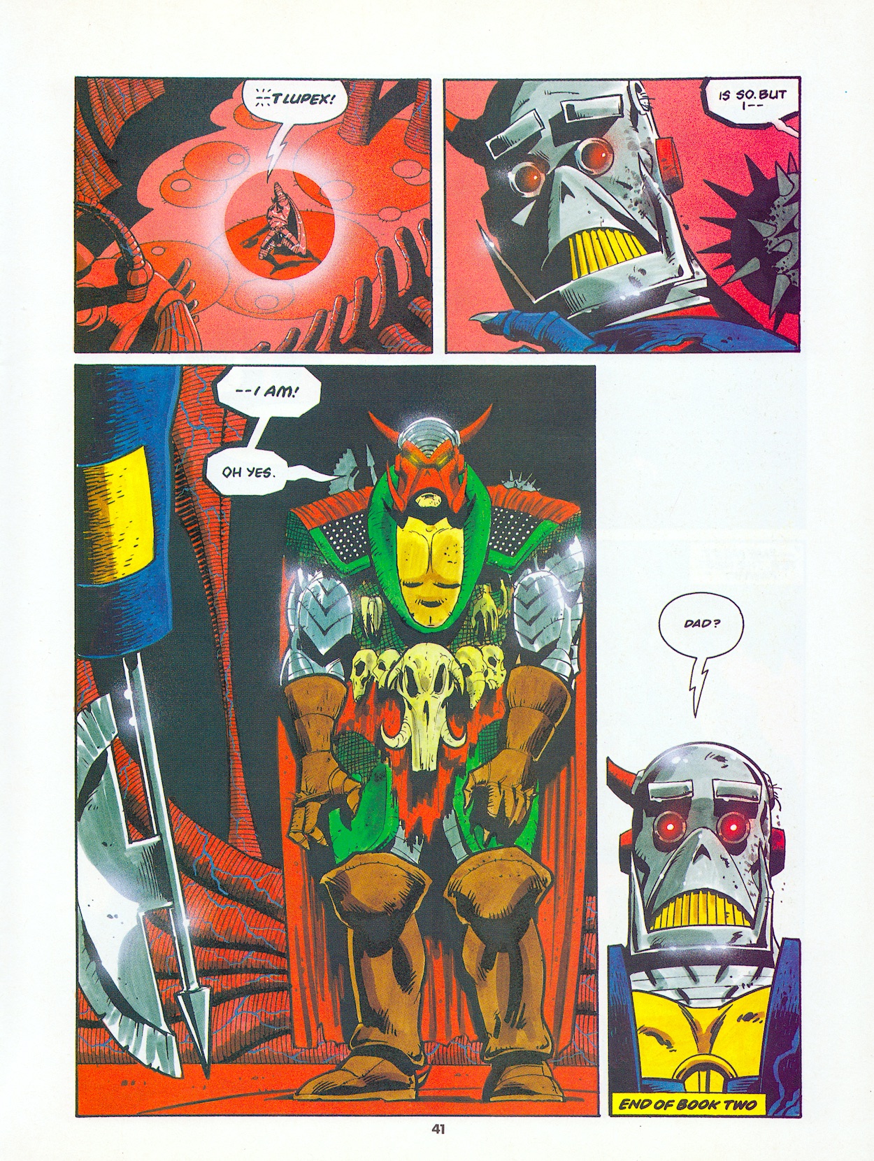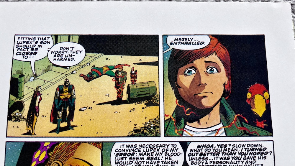 It’s a thrilling conclusion. It rockets along but never fails to hit the right character beats as it goes. Lupex feels like a genuine threat for the seemingly indestructible Death’s Head, all the while our hero (I’m just going to call him that from now on, I think he deserves it after all this) quips escalate the more desperate he gets, almost like he’s trying to use humour to keep himself going. After it’s all over he even begins to gloat, but he stops himself. He doesn’t want to end up like his father!